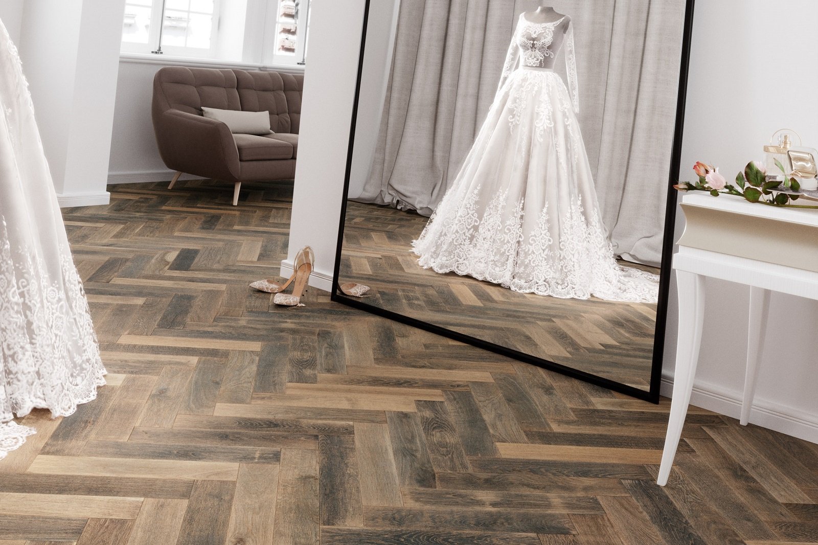 PALERMO - Unikalna kolorystyka, której obrazem jest wyraziste, ciemno-złote usłojenie oraz widoczny biel krawędziowy. Efekt takiego mariażu nie przytłacza, a kreuje ciepły, przyjemny klimat każdego, nawet najbardziej wymagającego wnętrza. Aspekt dekoracyjny podbija układ desek w klasyczną jodełkę.