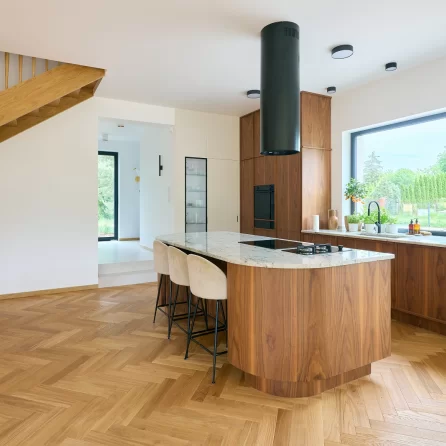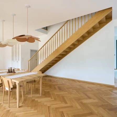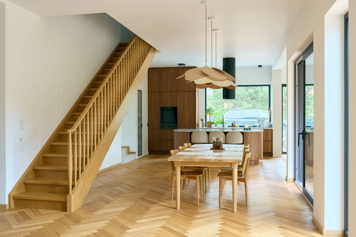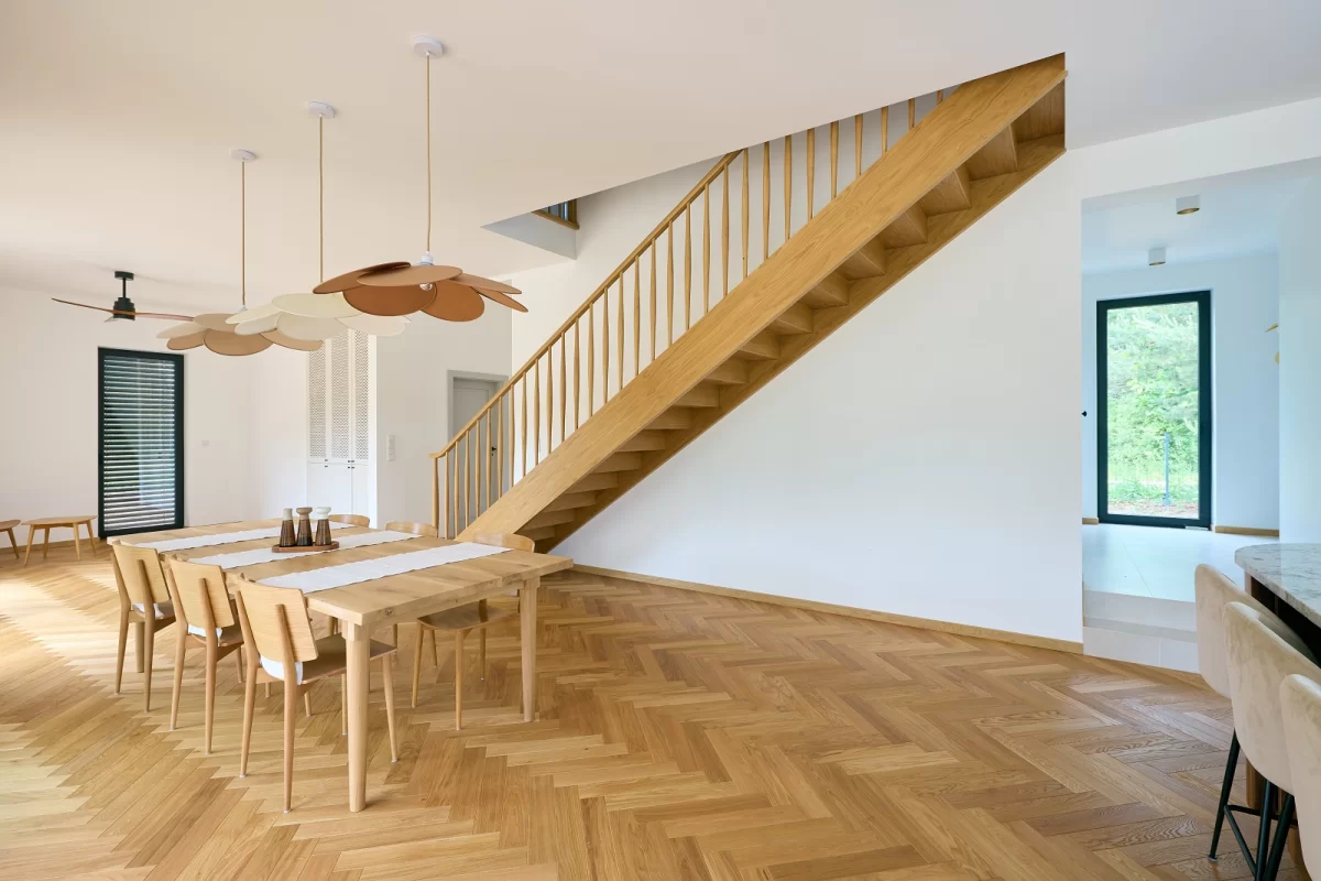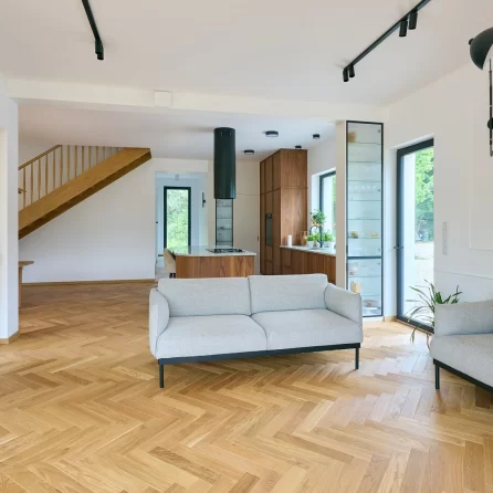 The oiled Oak Canton floor in a warm shade captivates with its natural look and distinctive, original grain that gives it a unique character. It perfectly highlights the style and atmosphere of any interior - from cozy domestic spaces to elegant commercial arrangements. Thanks to the use of natural oil, the wood can breathe freely, which translates into its exceptional durability and resistance to changes in humidity. This is not only an aesthetic but also a practical choice that will delight the eye and fulfill its functions for many years.