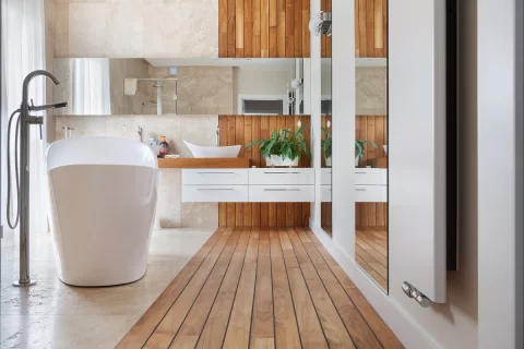 Wooden floors on the wall.