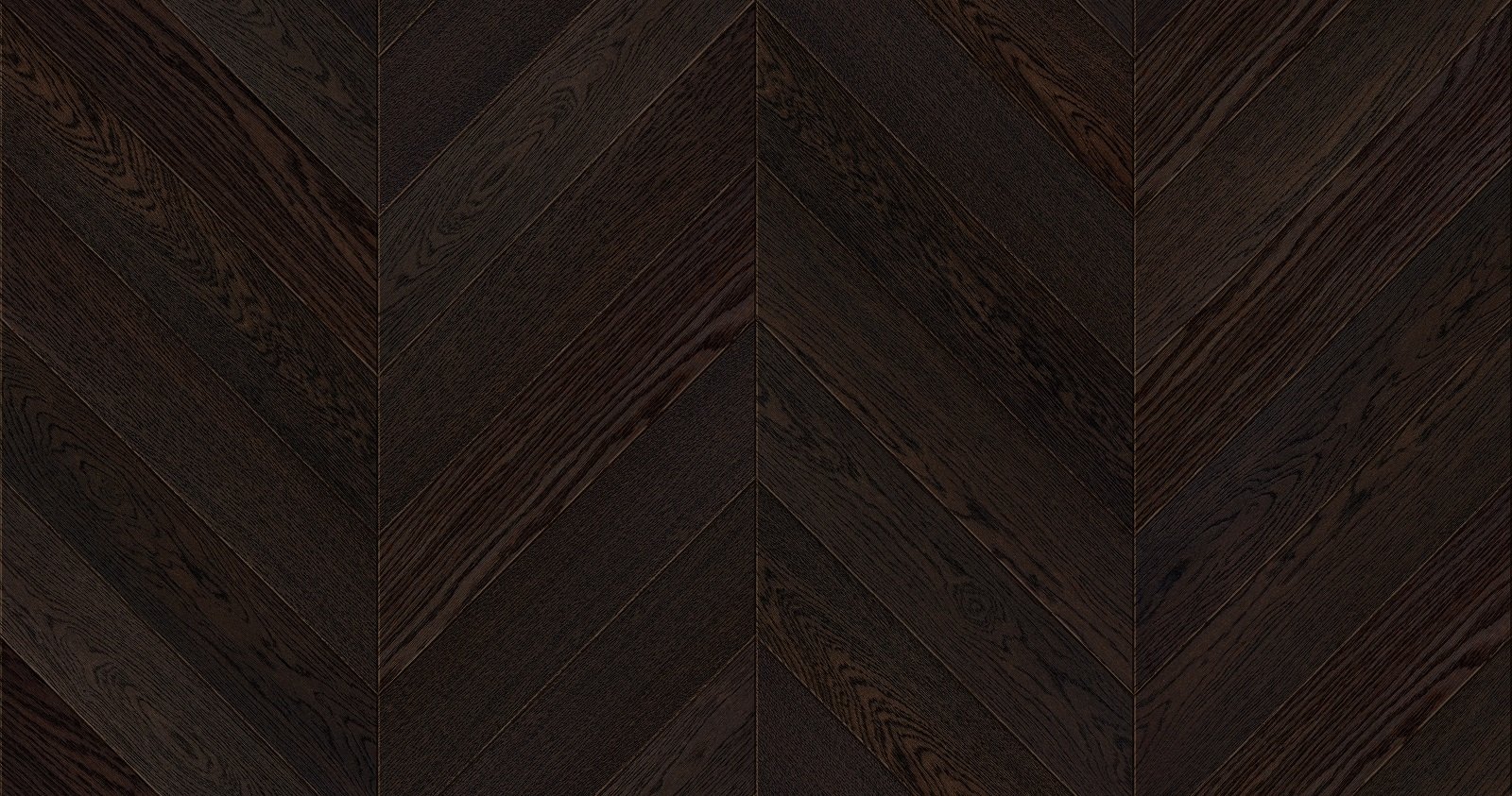 Podłoga dębowa olejowana w mocnych odcieniach brązu i czerni. Spełni się w dużych dobrze oświetlonych wnętrzach.