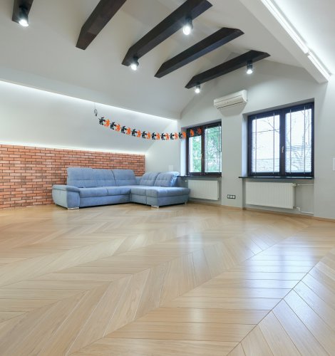 Podłoga jest lakierowana. Istnieje również możliwość zamówienia wersji szczotkowanej. W takim wariancie nabiera bardziej naturalnego wyglądu a wszelkiego rodzaju zarysowania pozostają mniej widoczne.