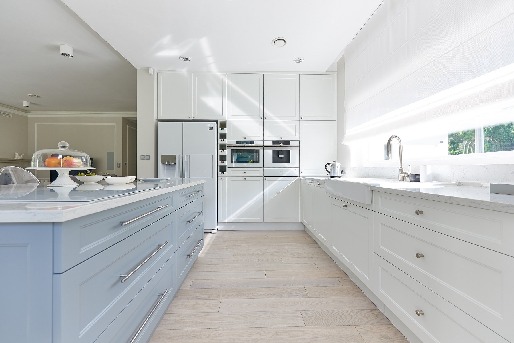Istotna w tym kontekście staje się podłoga. Jeżeli chodzi o aspekt wizualny, to projektanci wnętrz podkreślają, że drewniana podłoga w kuchni sprawdzi się szczególnie dobrze, kiedy chcemy połączyć stylistycznie kuchenne wnętrze z innym pomieszczeniem, np. salonem czy strefą wejściową. Ten sam rodzaj posadzki w kuchni i przedpokoju scali przestrzeń wizualnie i sprawi, że wyda się ona większa niż w rzeczywistości.