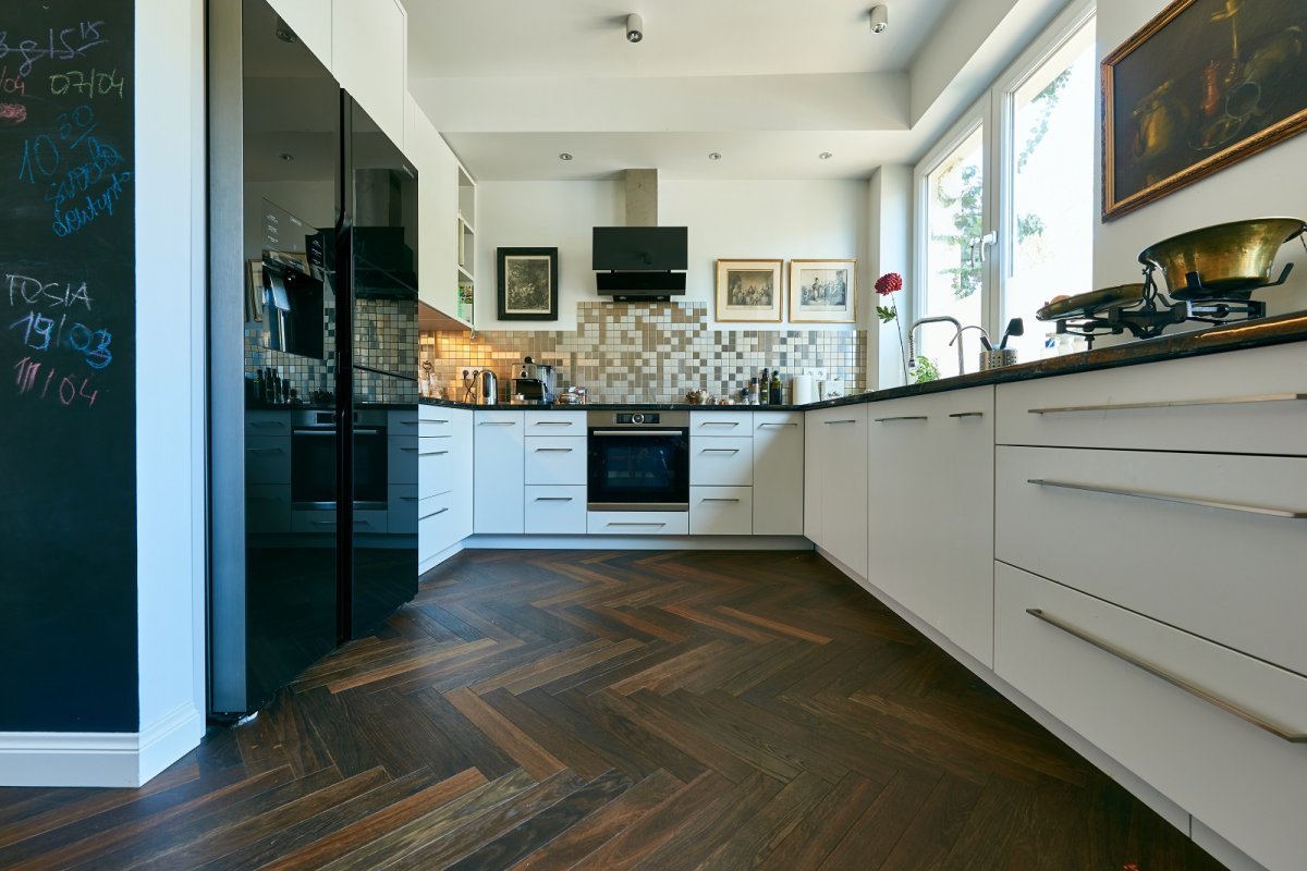 Ważne jest również wykończenie podłogi. Deski w naszej ofercie dostępne są w połysku, pół-połysku i macie. Decyzja o tym, który wariant jest lepszy, ma charakter indywidualny i zależy od aranżacji kuchni oraz osobistych preferencji jej właściciela, ale to na podłogach matowych i półmatowych w najmniejszym stopniu widać skutki użytkowania.