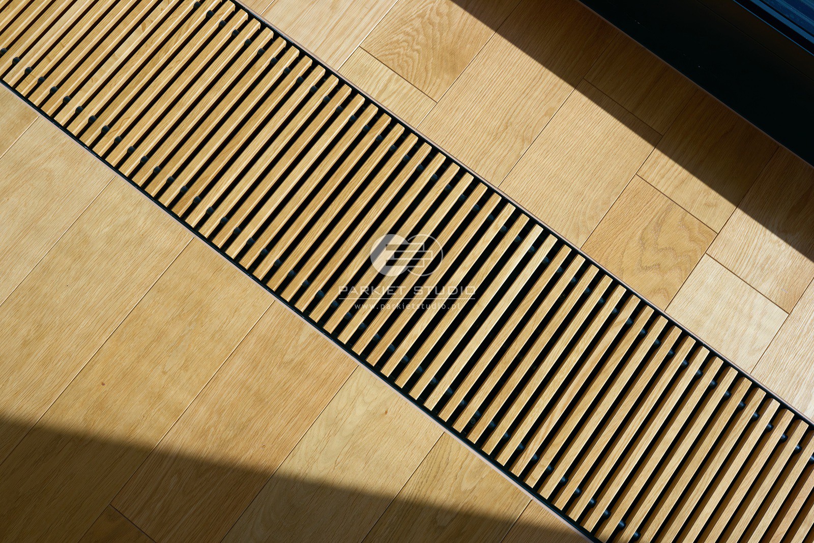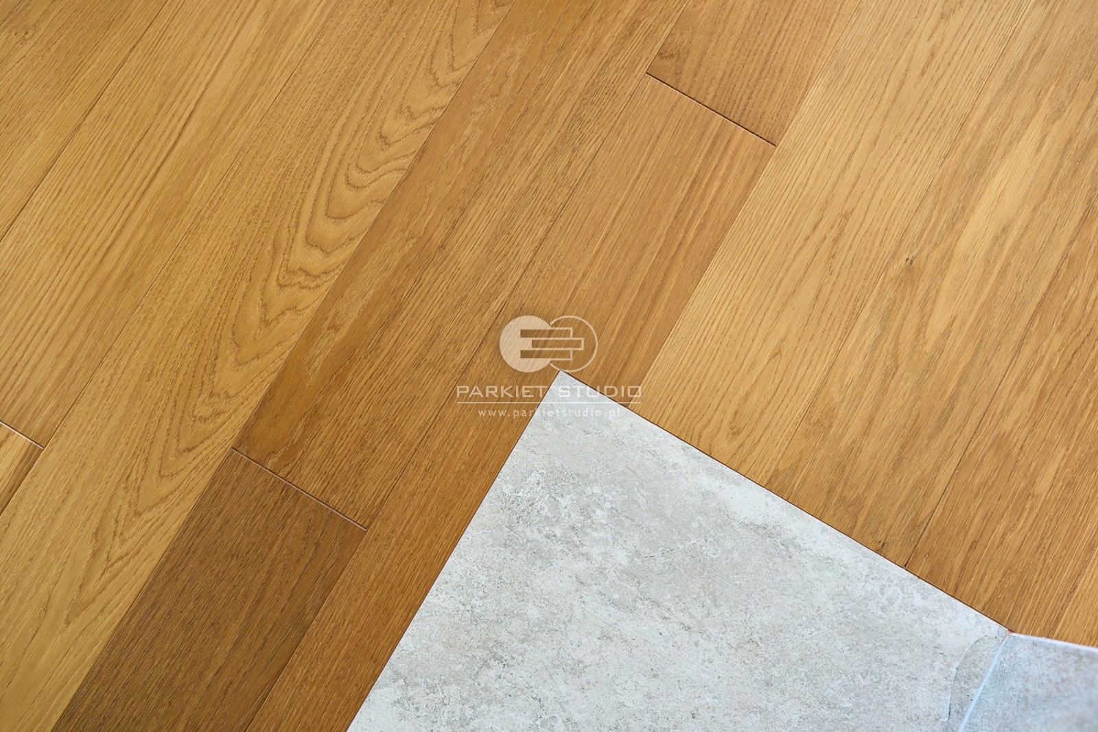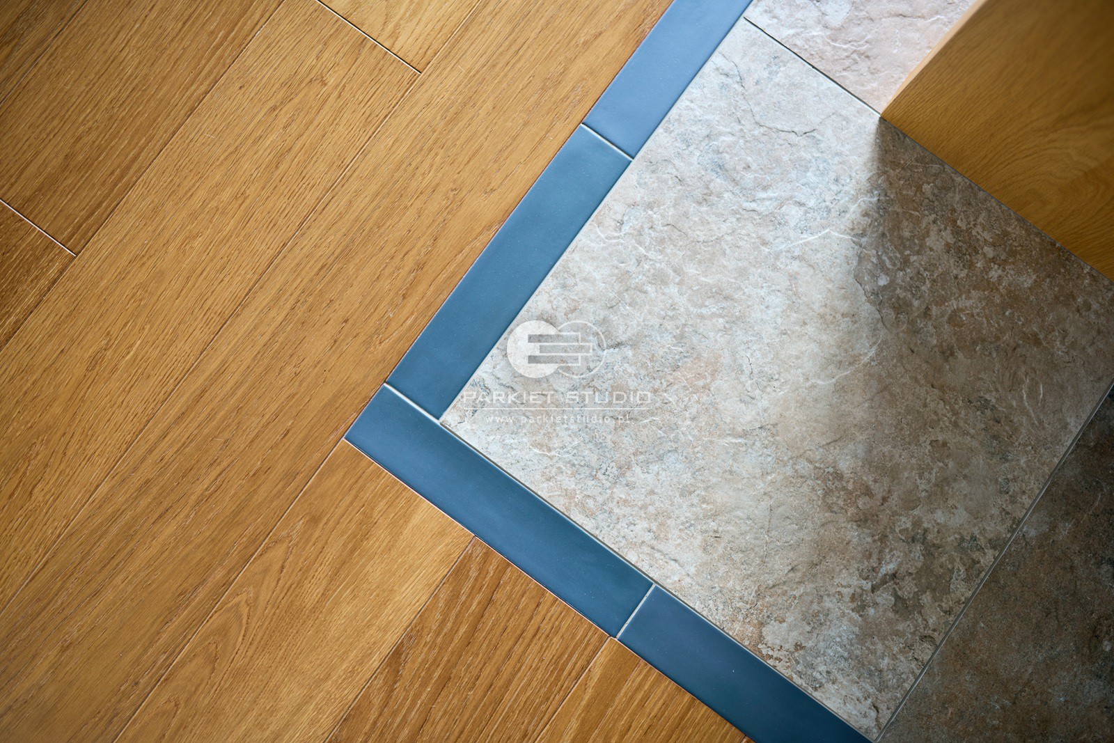 Poniżej przedstawiamy przykłady łączeń podłóg drewnianych np. z gresem, grzejnikami kanałowymi, obróbką Floor-Box, bordiurą, listwami metalowymi ozdobnymi, pasowaniem po łuku, skosie lub płytkami w układzie heksagonalnym.