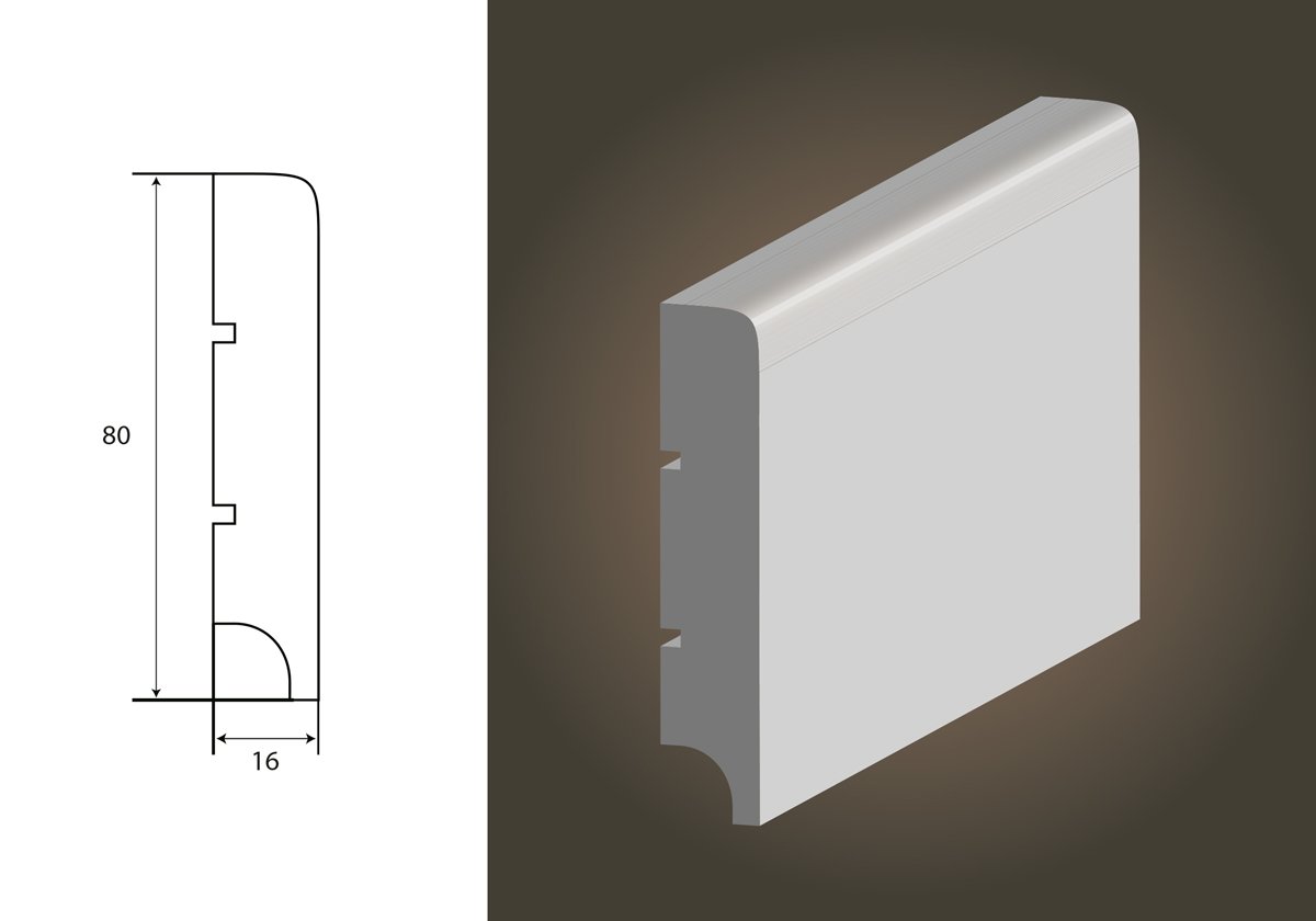 Listwa przypodłogowa wykonana z MDF, lakierowana w kolorze biały półmat.