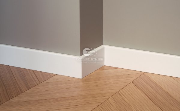 Listwa przypodłogowa wykonana z MDF, lakierowana w kolorze biały półmat.