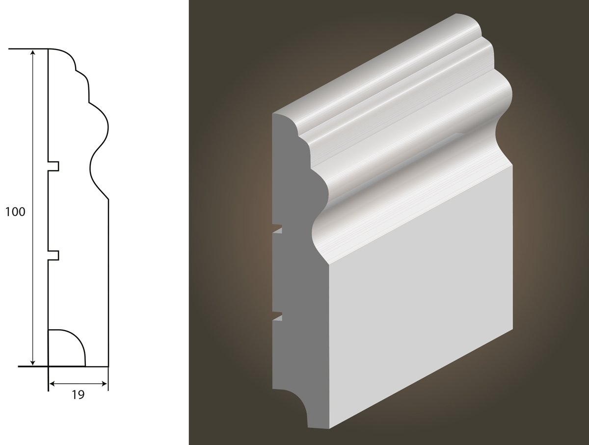 Listwa przypodłogowa wykonana z MDF, lakierowana w kolorze biały półmat.