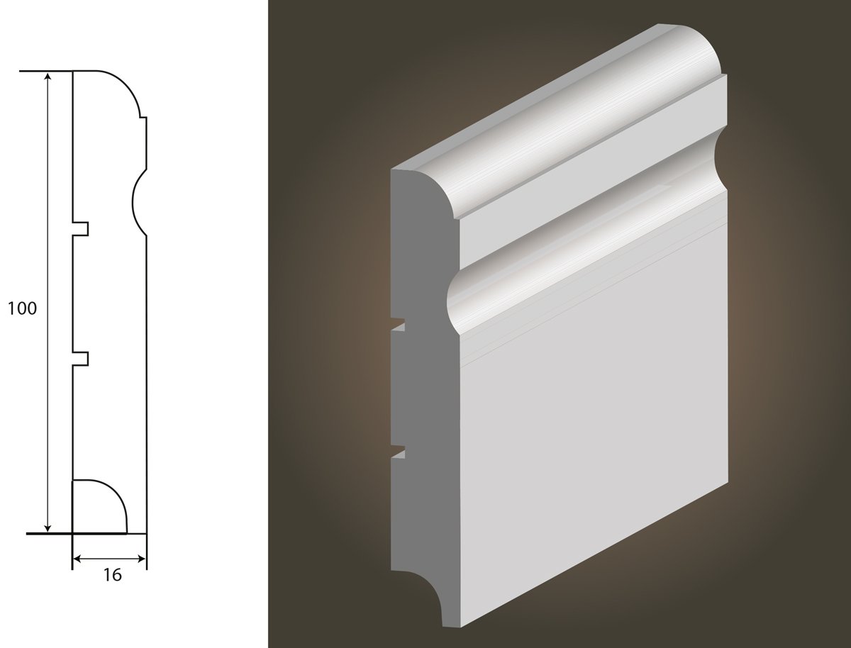 Listwa przypodłogowa wykonana z MDF, lakierowana w kolorze biały półmat.