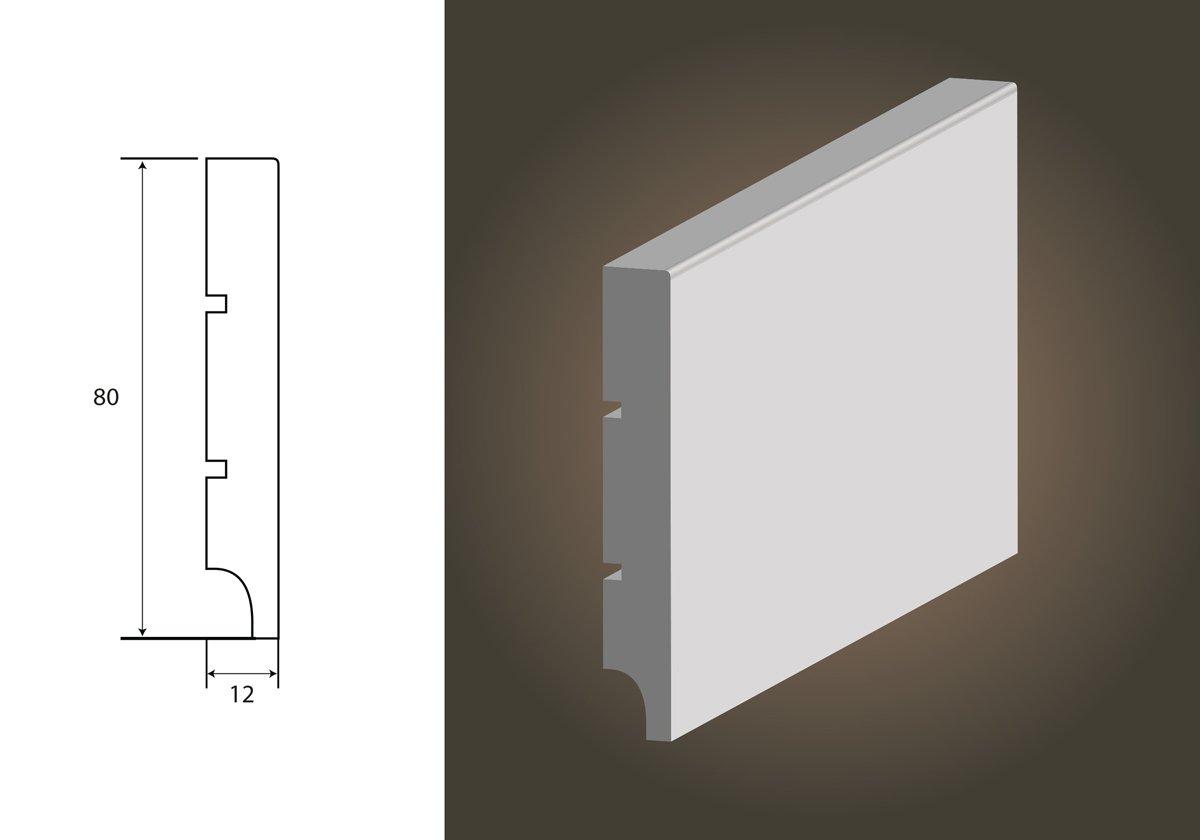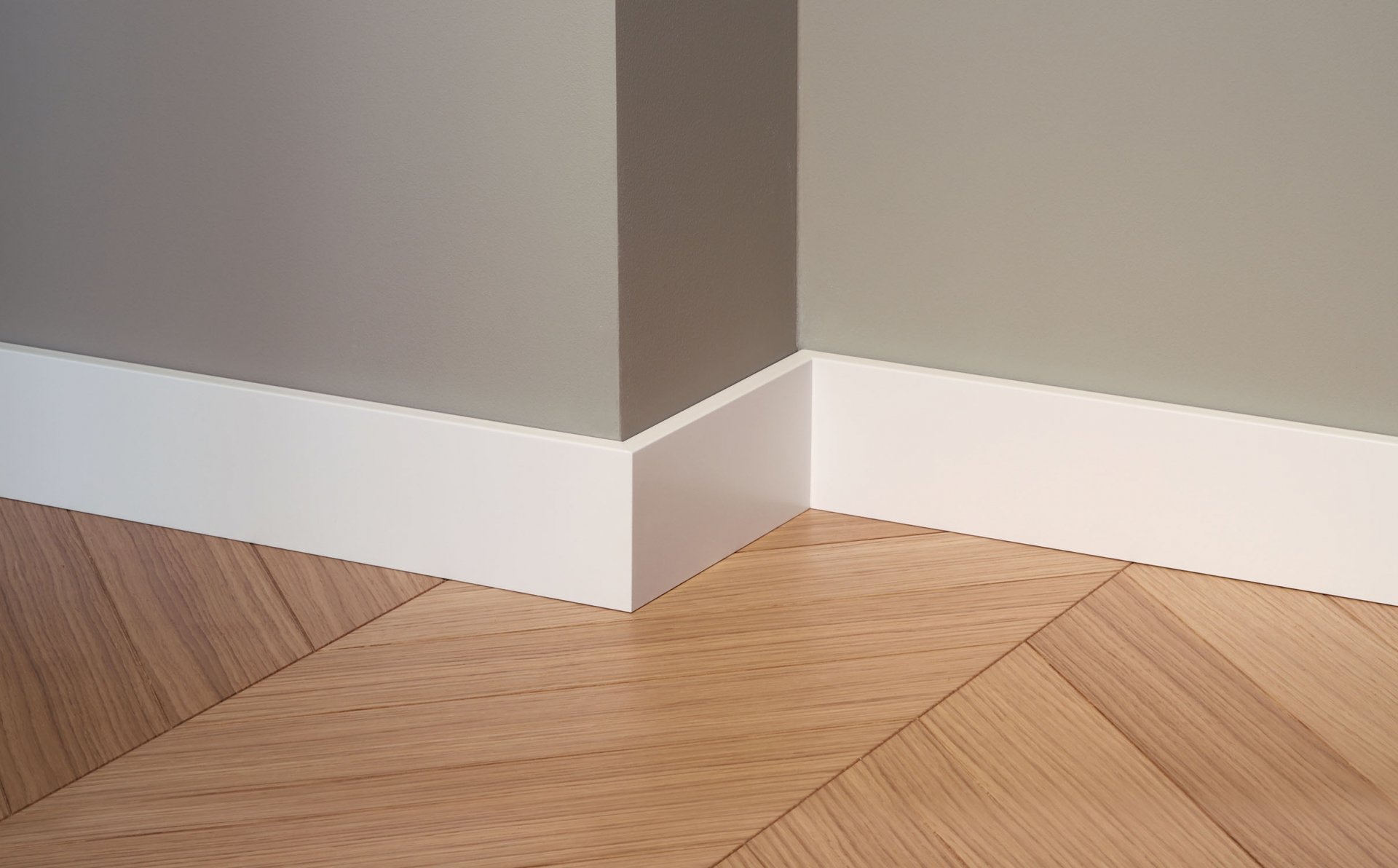 Listwa przypodłogowa wykonana z MDF, lakierowana w kolorze biały półmat.