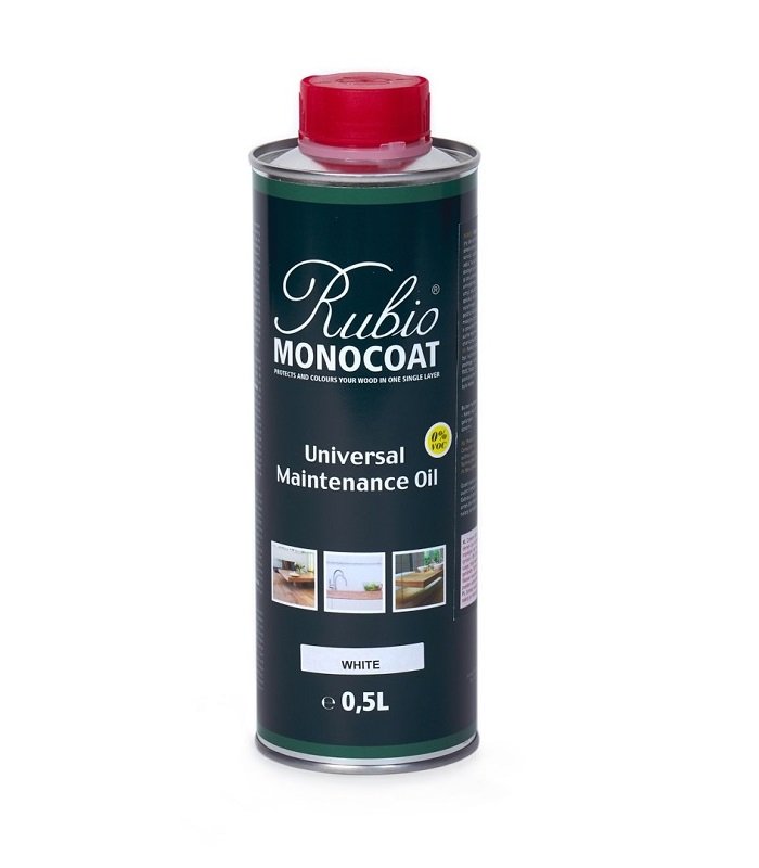 RMC Universal Maintenance Oil White to produkt do konserwacji, który odświeża drewno zabezpieczone olejem Rubio® Monocoat, jak również poprawia wygląd powierzchni olejowanych innymi produktami.