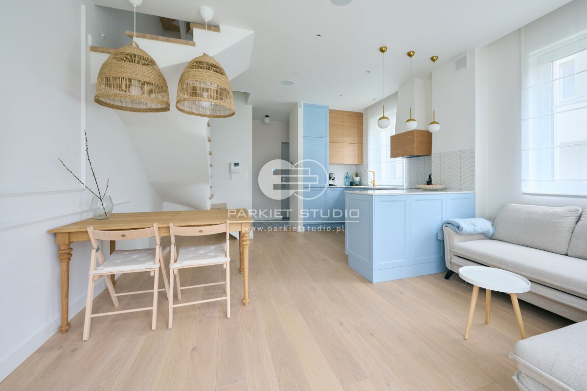 Dąb Bielony to podłoga zdecydowanie dla osób ceniących niestandardowe rozwiązania i lubiących się wyróżniać. Jasne deski, o widocznych sękach i chłodnej kolorystyce będą idealnie pasować do odważnych aranżacji. Sprawdzą się zwłaszcza w pomieszczeniach typu loft lub studio, gdzie otwarta przestrzeń dodatkowo podkreśli ich niecodzienność, a światło słoneczne wpadające przez wysokie okna uwypukli naturalne piękno drewna.