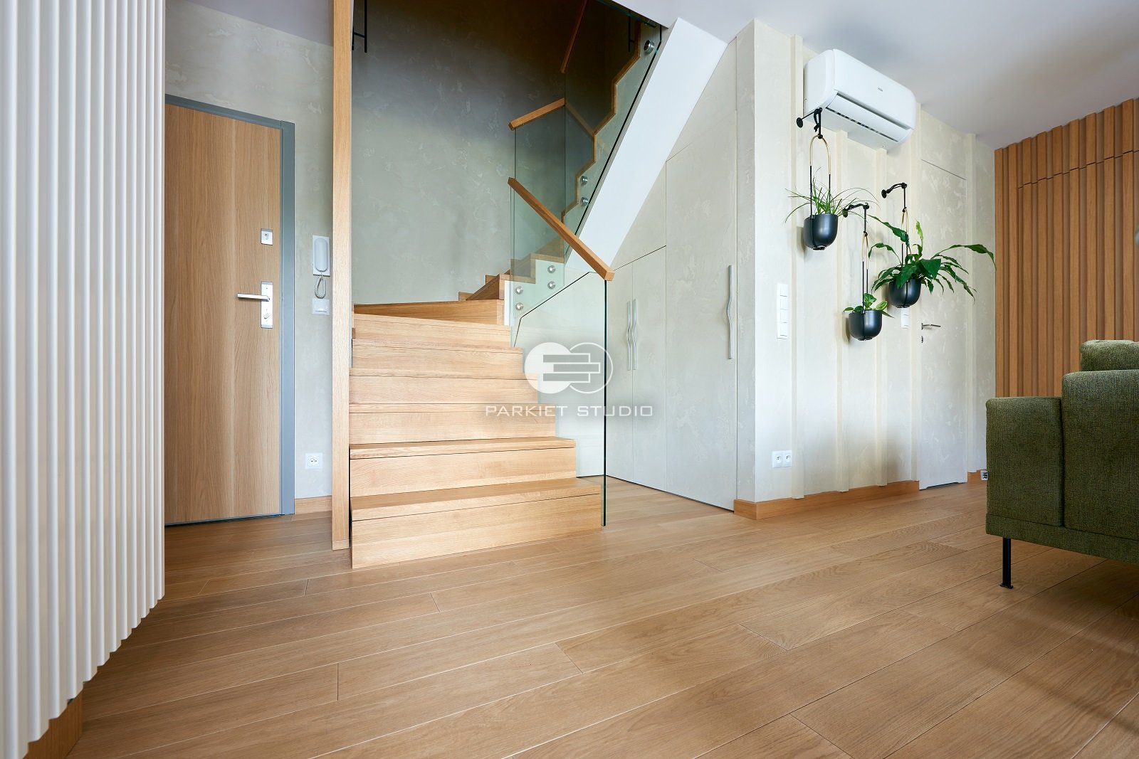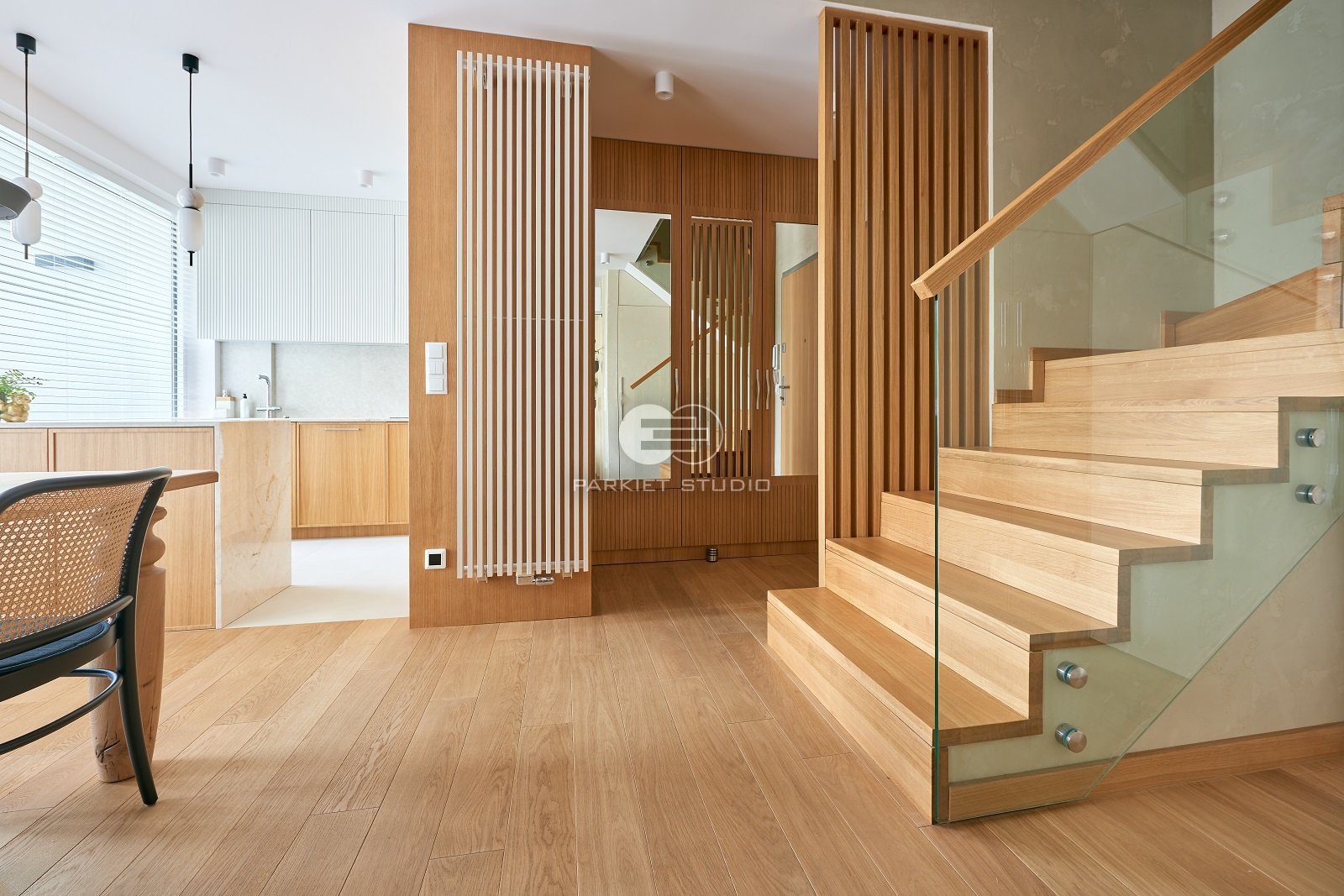 Dzięki starannie dobranemu olejowoskowi nasza podłoga dębowa zyskała wyjątkowy, naturalny wygląd surowego drewna. Jasny, delikatnie słomkowy odcień z subtelną nutą szarości nadaje wnętrzu lekkości i świeżości. To idealny wybór dla tych, którzy cenią minimalizm, ponadczasową elegancję i autentyczność materiałów. Matowe wykończenie podkreśla naturalną strukturę drewna, tworząc ciepłą, a zarazem nowoczesną atmosferę.