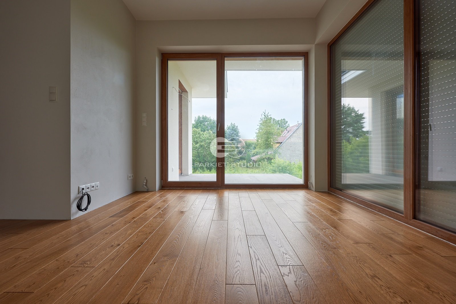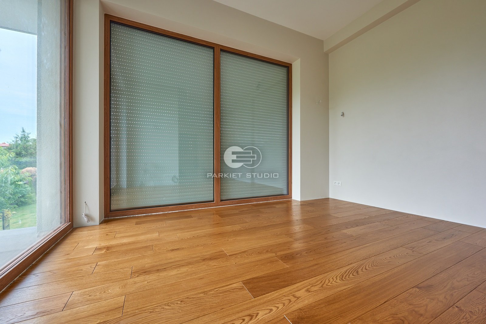 Deska dębowa polakierowana w tonacji bursztynowej, miodwej. Ciepły kolor tej podłogi przywołuje na myśl naturalne barwy związane z przyrodą. Daje poczucie spokoju, harmonii i równowagi.