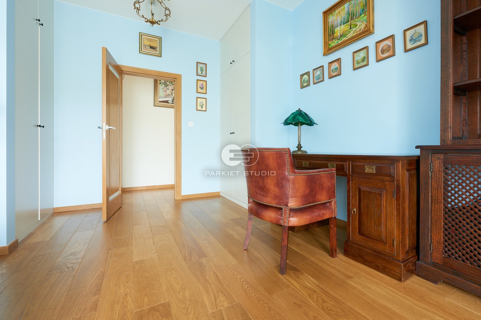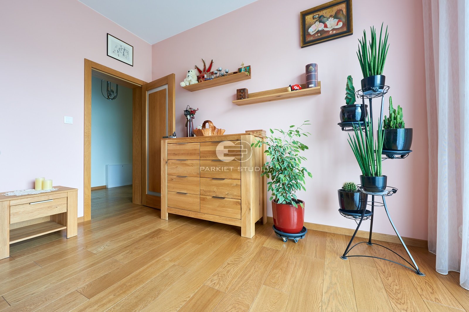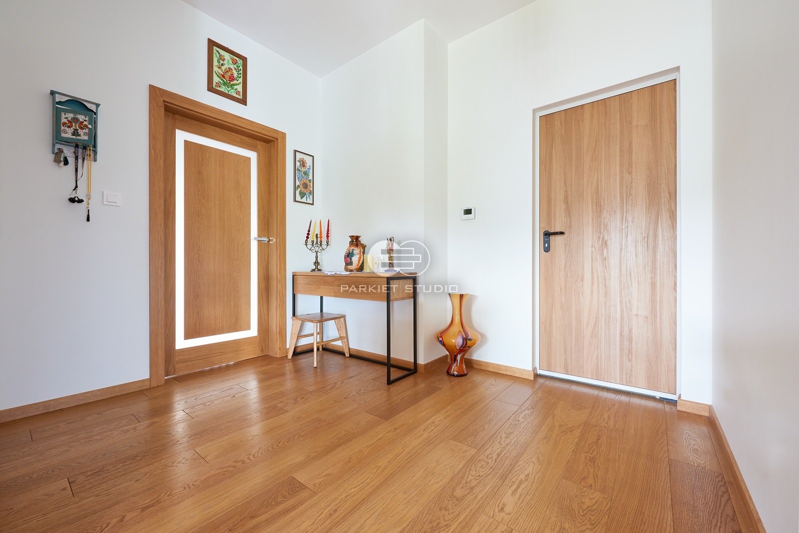 Deska dębowa polakierowana w tonacji bursztynowej, miodwej. Ciepły kolor tej podłogi przywołuje na myśl naturalne barwy związane z przyrodą. Daje poczucie spokoju, harmonii i równowagi.