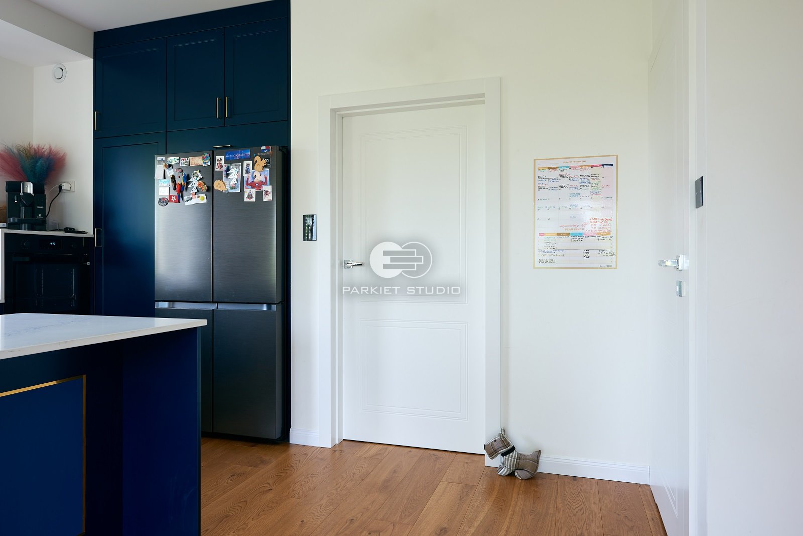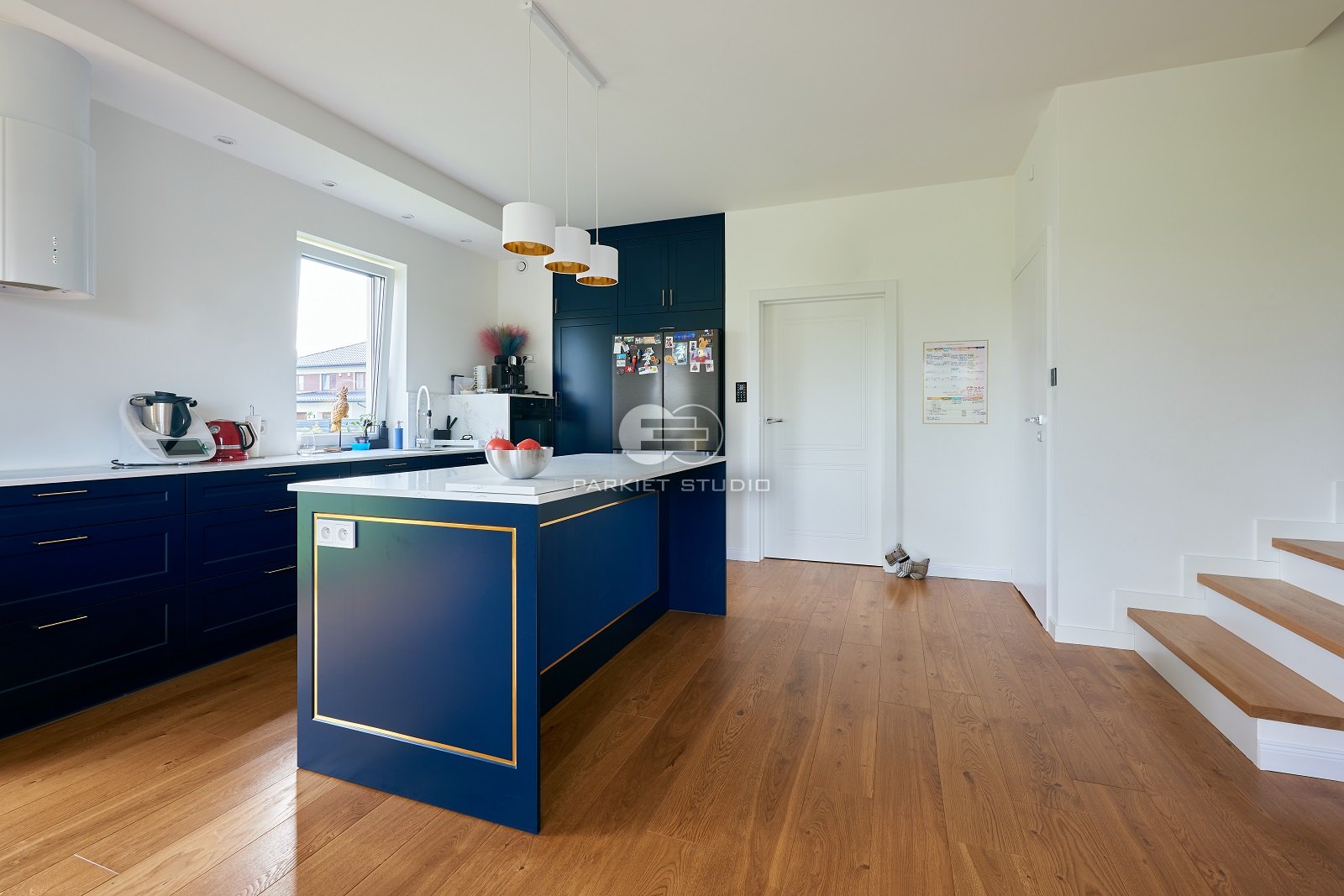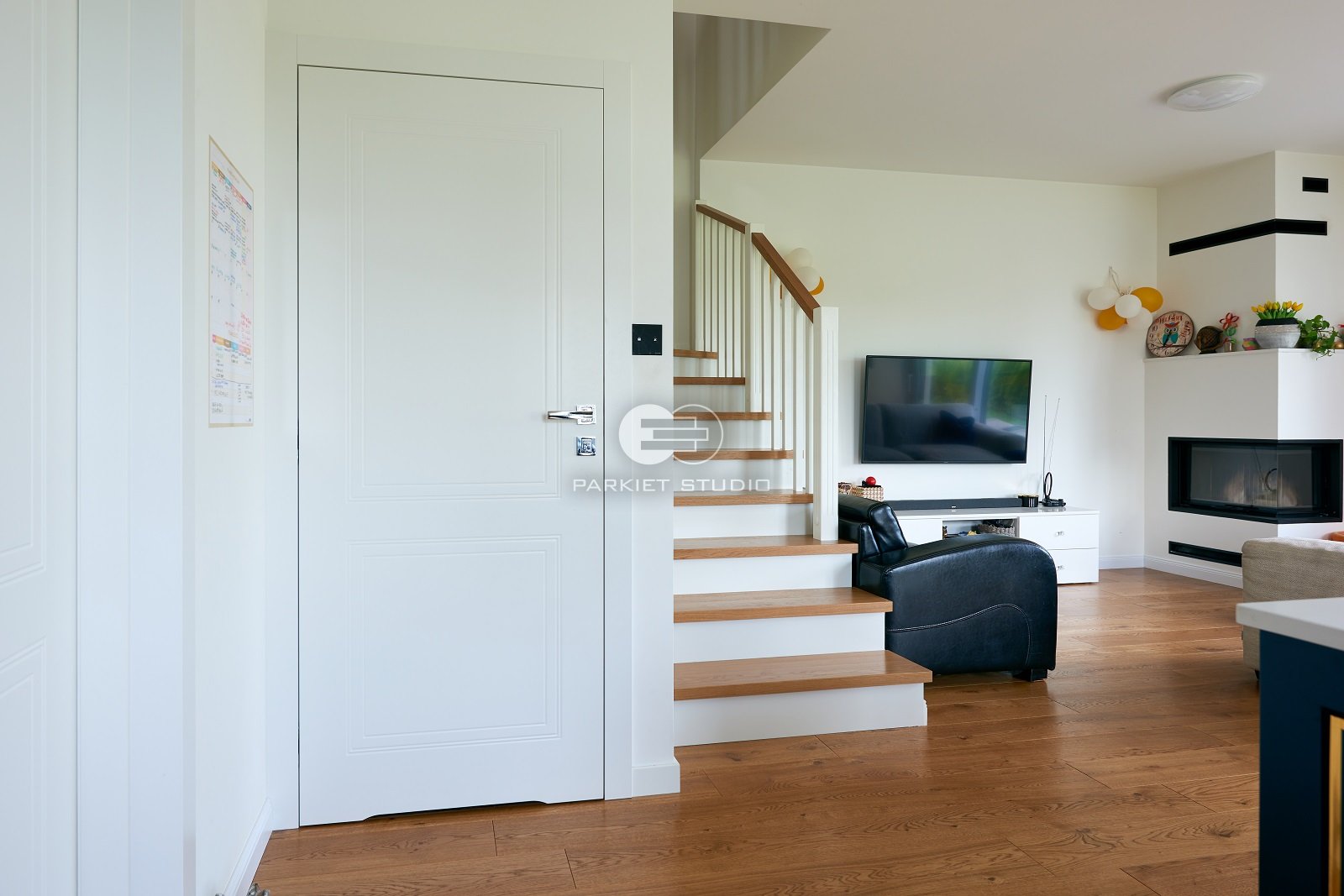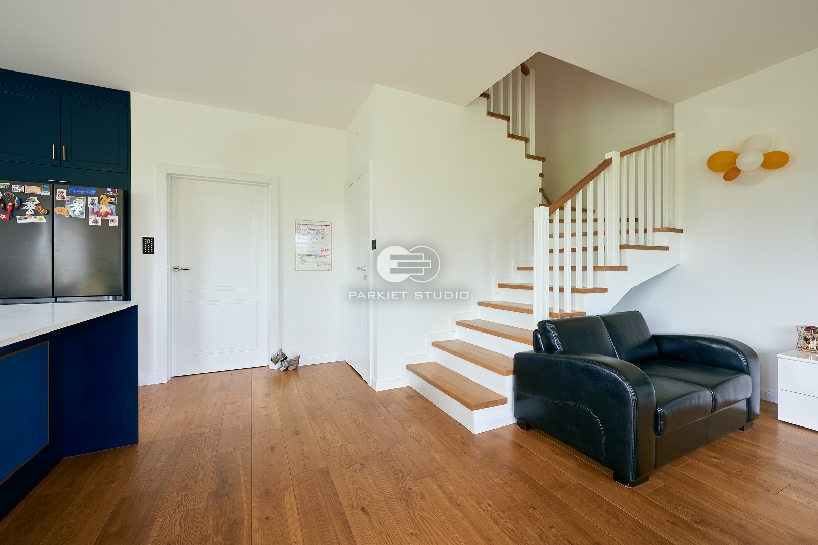 Deska dębowa polakierowana w tonacji bursztynowej, miodwej. Ciepły kolor tej podłogi przywołuje na myśl naturalne barwy związane z przyrodą. Daje poczucie spokoju, harmonii i równowagi.