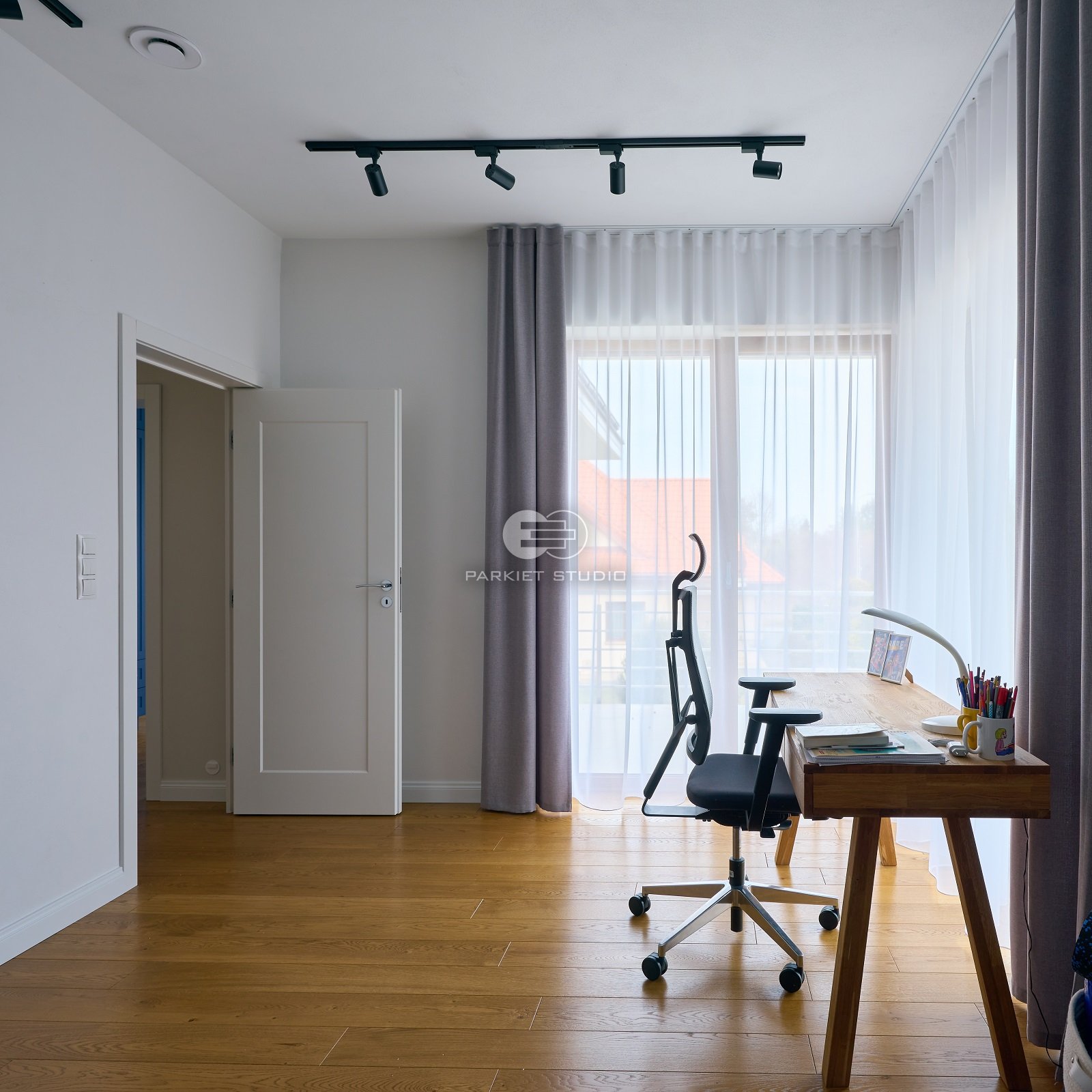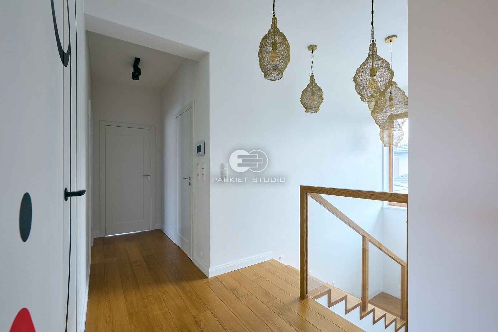 Deska dębowa polakierowana w tonacji bursztynowej, miodwej. Ciepły kolor tej podłogi przywołuje na myśl naturalne barwy związane z przyrodą. Daje poczucie spokoju, harmonii i równowagi.