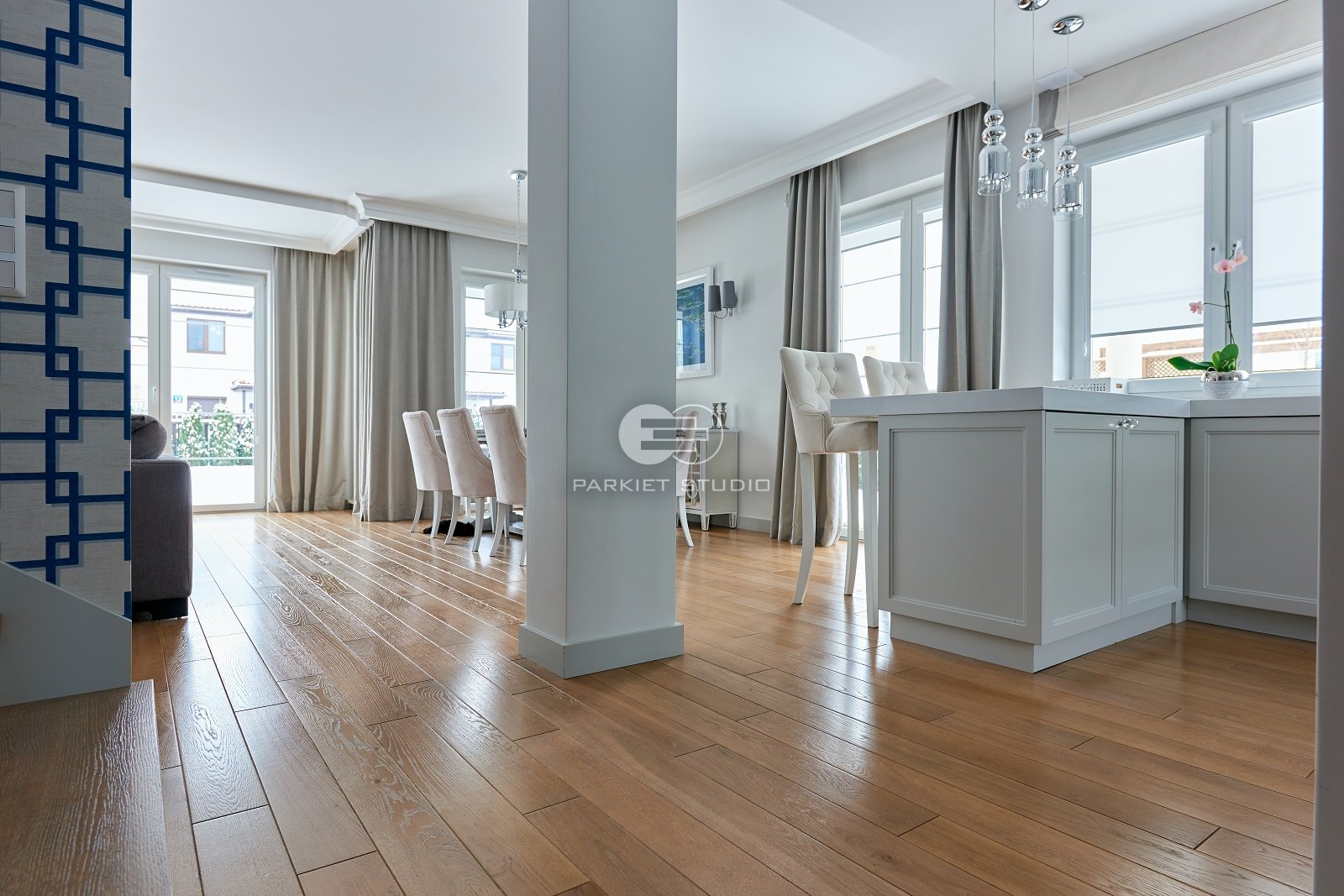 Dzięki patynowaniu i szczotkowaniu na powierzchni deski dębowej widoczne jest delikatne białe usłojenie. Podłoga w nutach delikatnej szarości i kremu będzie inspiracją zarówno do nowoczesnych i stylowych wnętrz. Podłoga jest lakierowana i szczotkowana. Dzięki temu wygląda bardziej naturalnie a wszelkiego rodzaju zarysowania pozostają mniej widoczne.