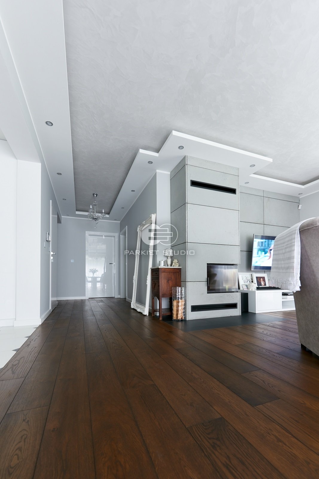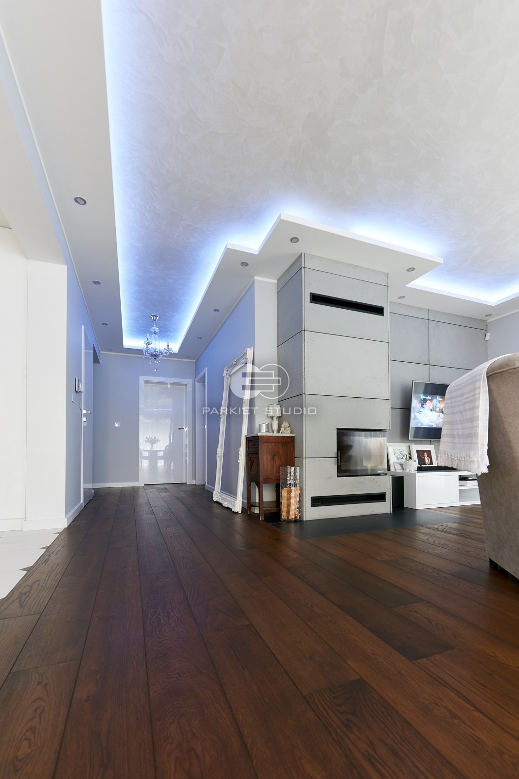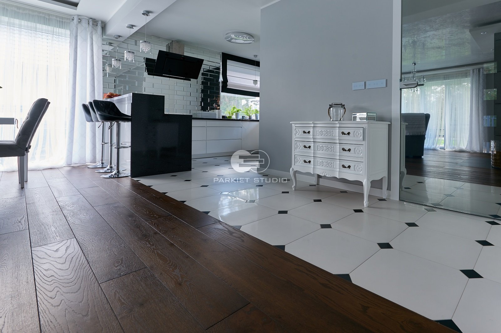 Deski dębowe wybarwione olejowoskami w tonacjach mocno ciemnego brązu. Podłoga będzie pasowała do dużych przeszklonych pomieszczeń urządzonych zarówno w stylu nowoczesnym jak i kolonialnym.