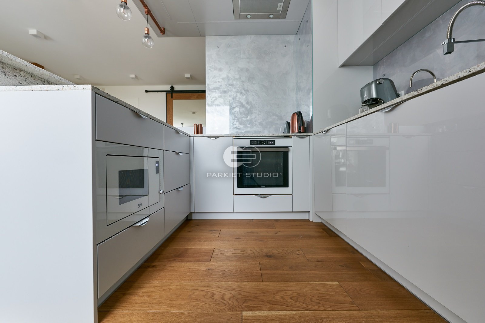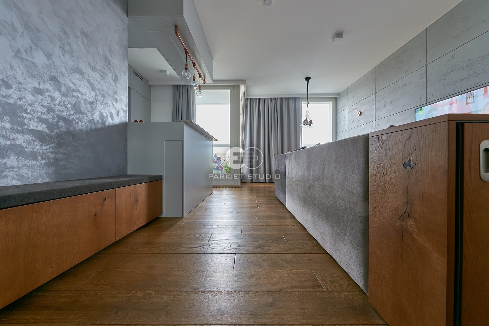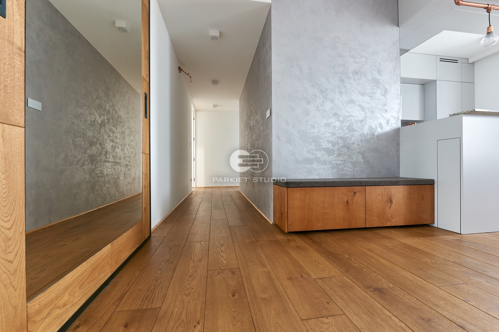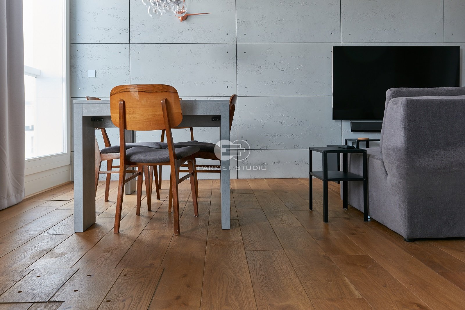 Podłoga dębowa olejowoskowana w skąpana w tonacjach złota i ciepłego brązu w ciepłym delikatnym kolorze antycznego dębu.