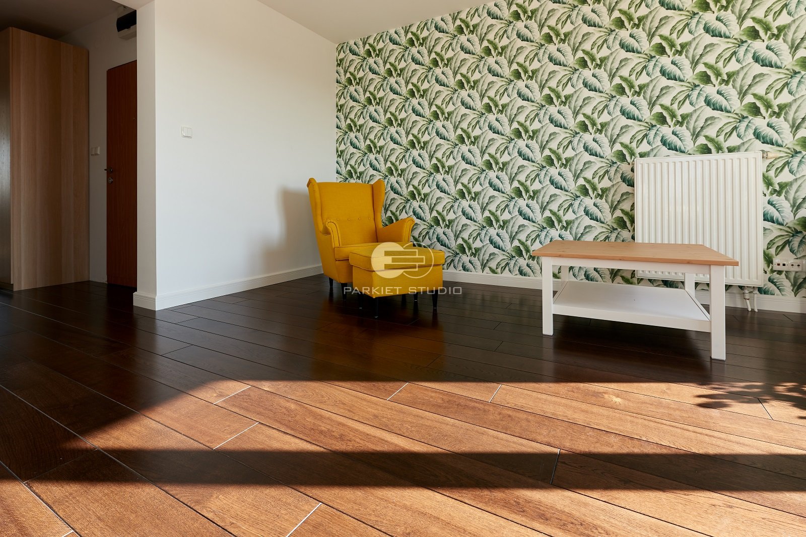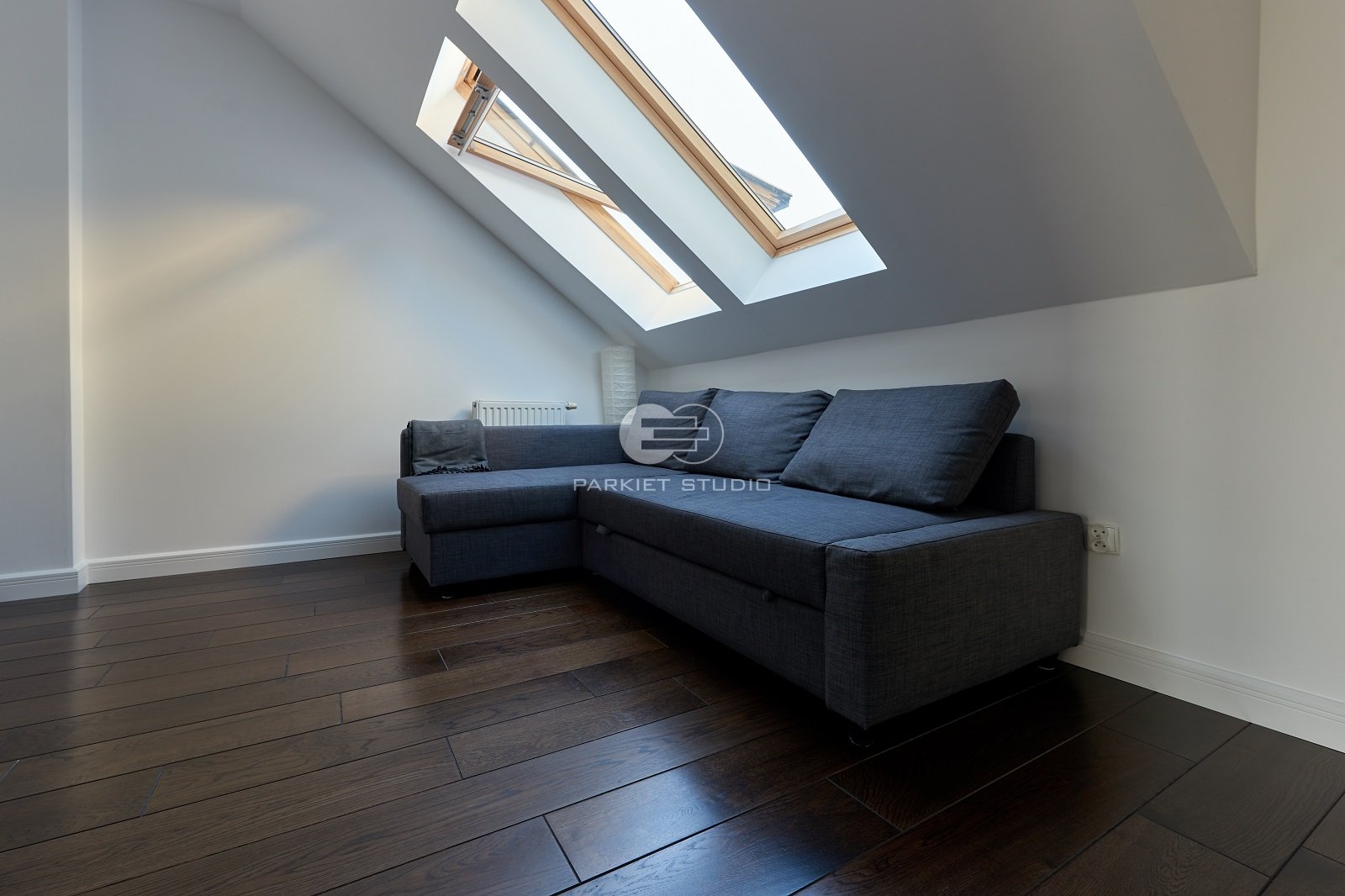Lakierowana podłoga dębowa, ciemna, elegancka w kolorze czerni i ciemnego brązu. Ciemne podłogi do doskonały punkt wyjścia do tworzenia kontrastów. Dobrze łączą się z jasnymi ścianami i kolorowymi dodatkami. Pięknie wygląda w dużych wnętrzach i dobrze doświetlonych