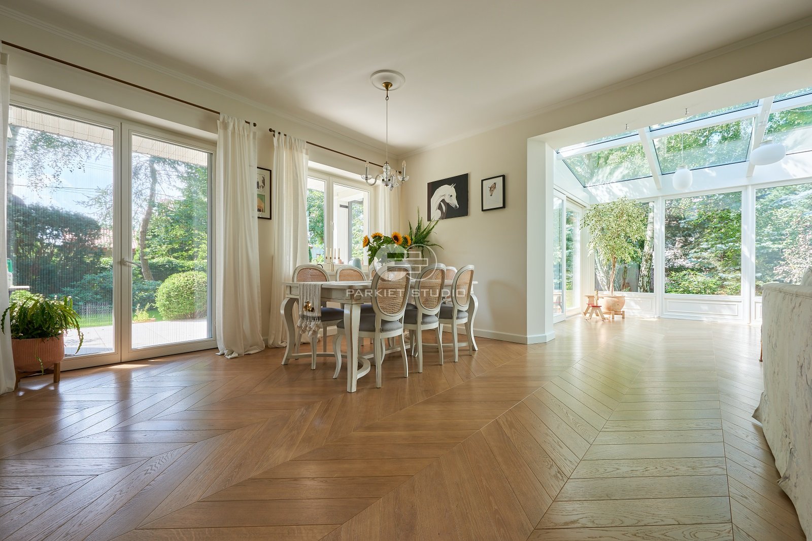 Podłoga jest lakierowana i szczotkowana. Dzięki temu wygląda bardziej naturalnie a wszelkiego rodzaju zarysowania pozostają mniej widoczne.
