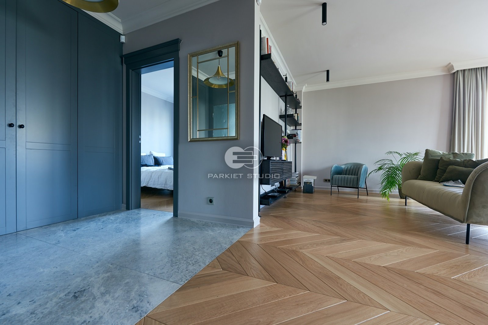 Ta polakierowana podłoga dębowa to połączenie wyrazistego charakteru naturalnego drewna z delikatnym, finezyjnym wykończeniem kolorystycznym. Jej powierzchnia została subtelnie rozbielona, przybierając ciepłe tonacje kremu i latte macchiato, które dodają lekkości i świeżości bez utraty głębi drewna.