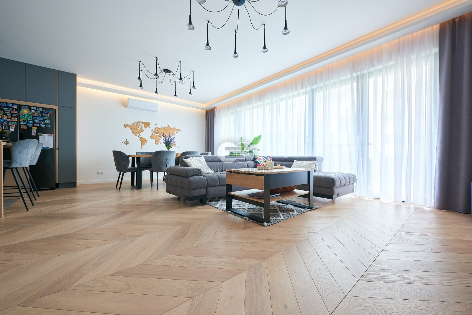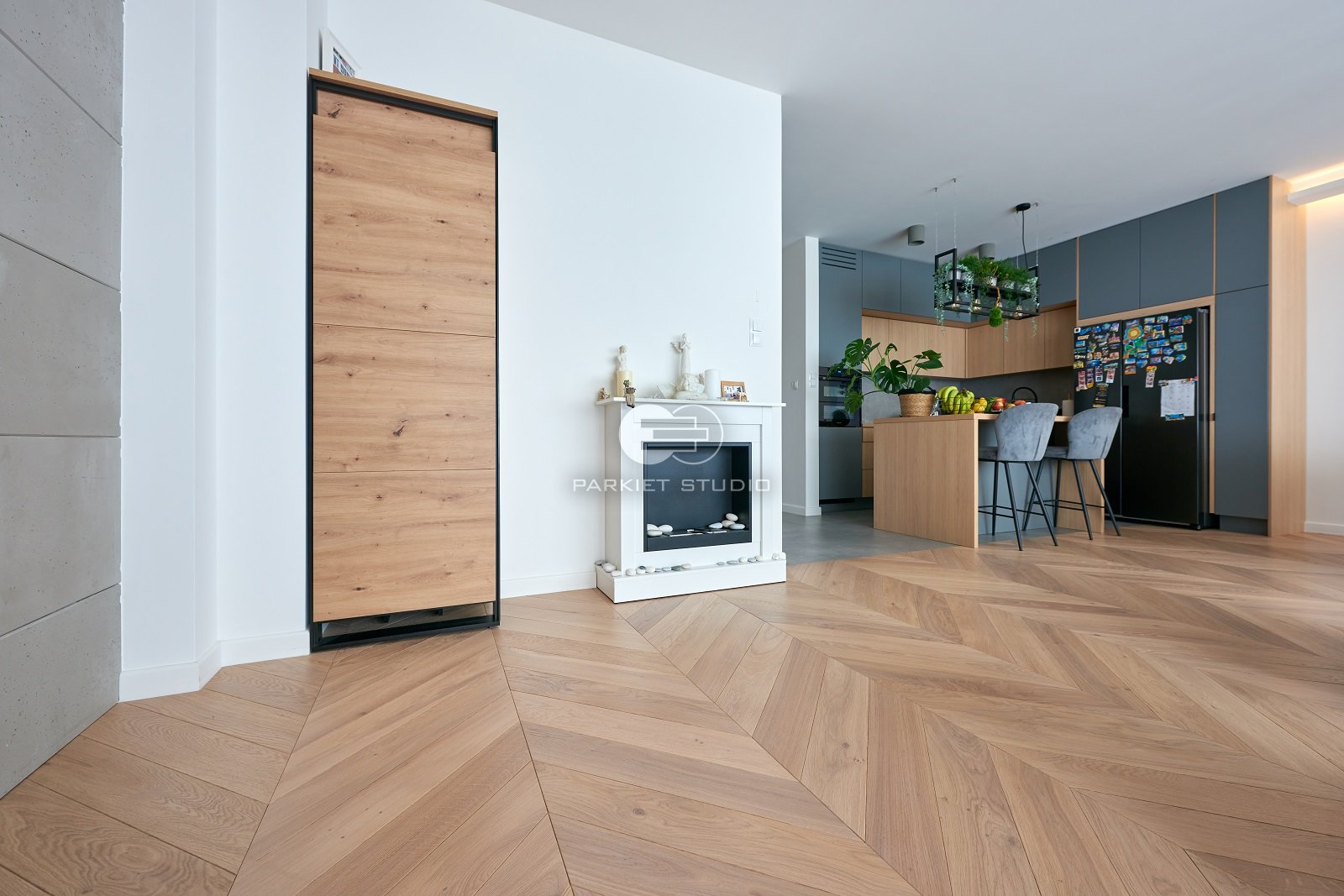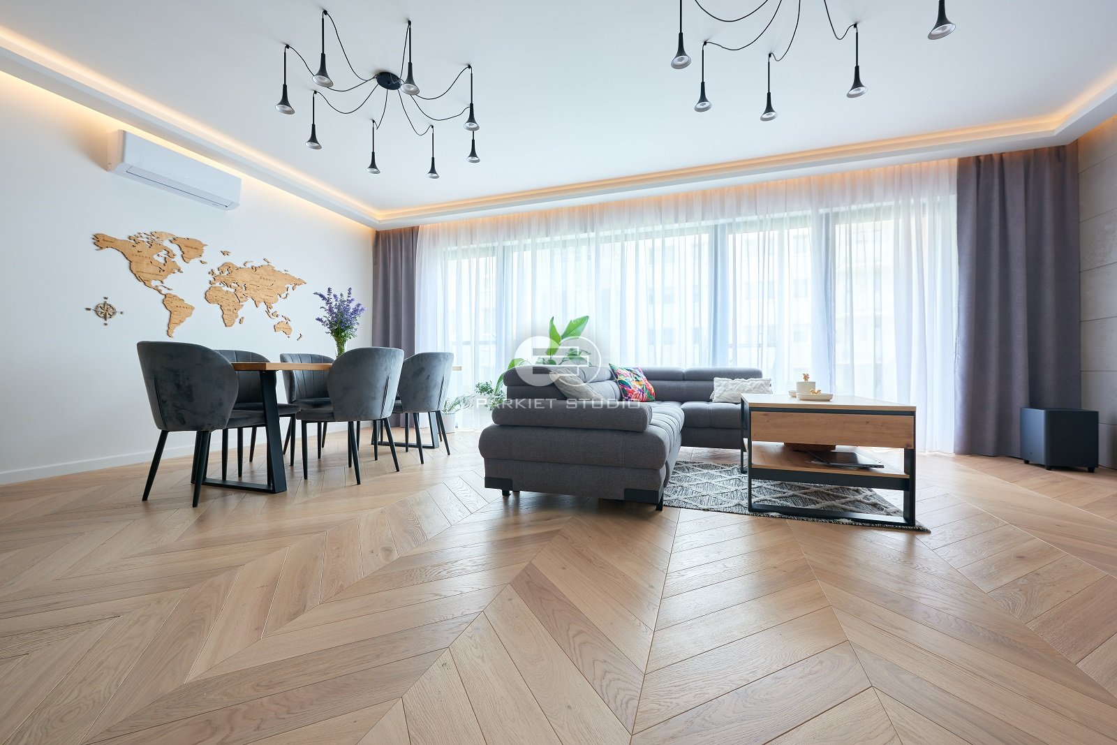 Podłoga szczotkowana, lakierowana w białym kolorze. Delikatny, biały kolor i widoczna struktura usłojenia nadaje tej podłodze wyjątkowej szlachetności.