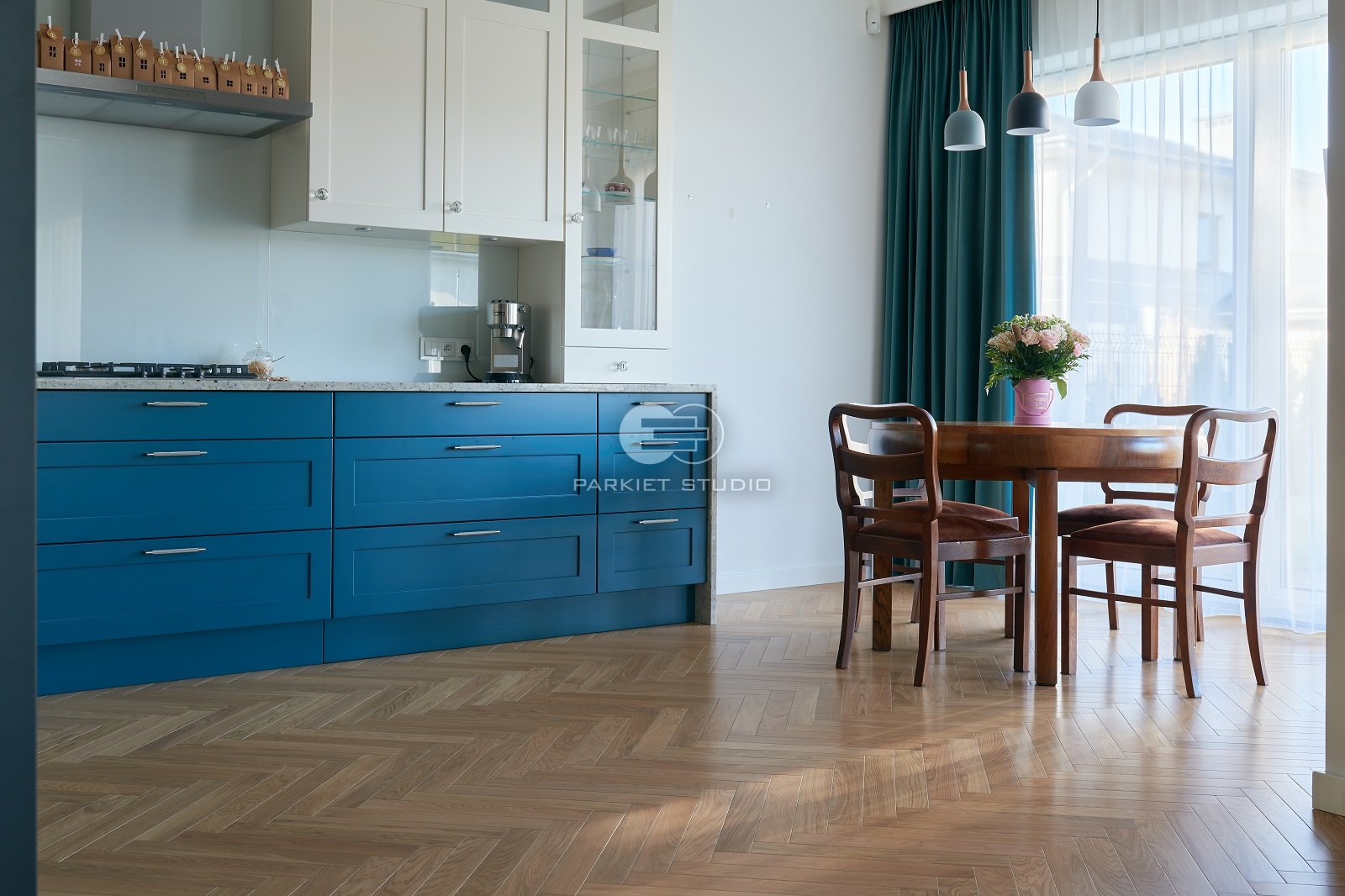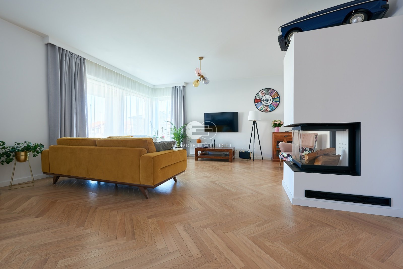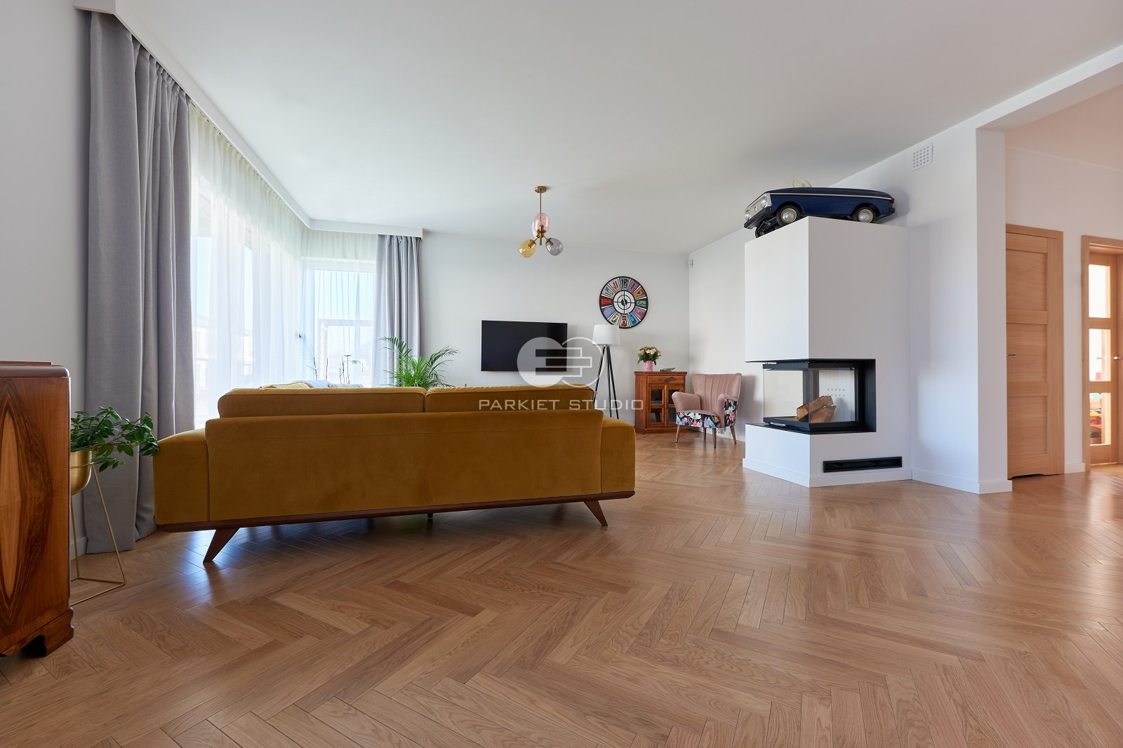 Ta lakierowana podłoga dębowa zachwyca ciepłą kolorystyką oraz unikalnym, naturalnym usłojeniem, które nadaje wnętrzu indywidualnego charakteru. Jej ponadczasowy wygląd sprawia, że doskonale komponuje się zarówno z nowoczesnymi, jak i klasycznymi aranżacjami.