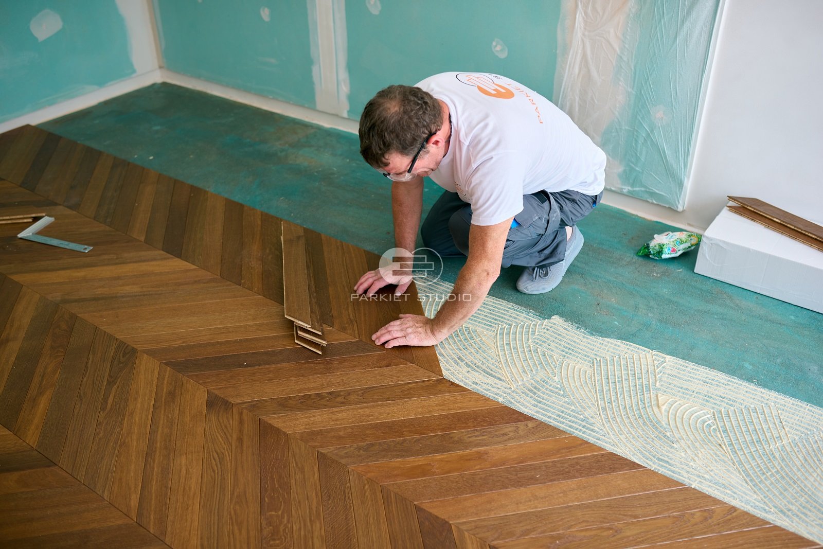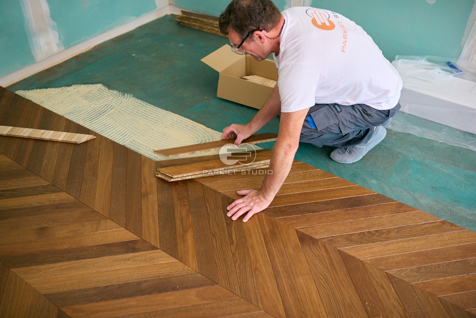 Jodełka Francuska Finish to podłoga dwuwarstwowa, olejowoskowana, fazowana czterostronnie - po przyklejeniu nie wymaga cyklinowania.