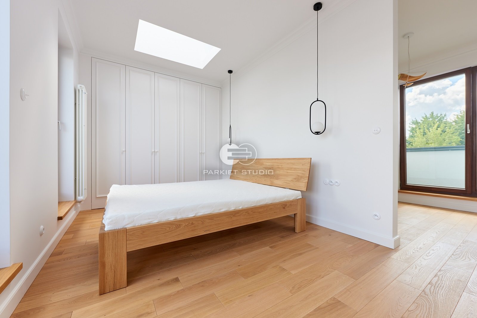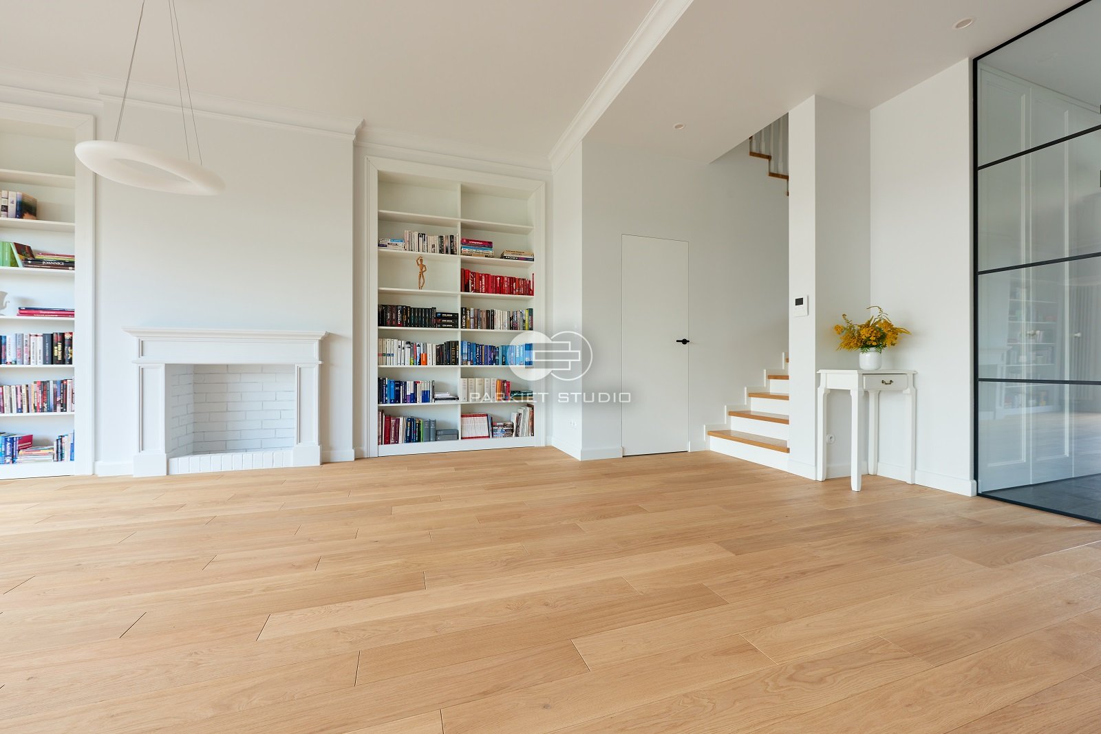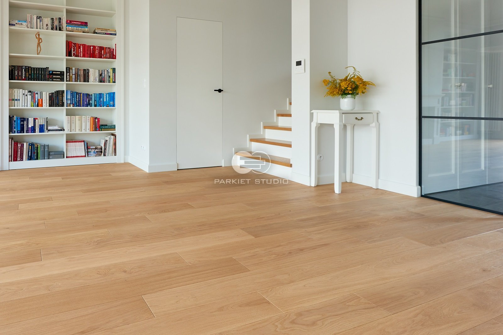 Podłoga wykonana z naturalnego drewna dębowego, charakteryzuje się wyjątkową trwałością i szlachetnym wyglądem. Została wykończona matowym lakierem, który nadaje jej subtelny, naturalny efekt, bez nadmiernego połysku. Jasna tonacja drewna wprowadza do wnętrza poczucie przestronności, lekkości i świeżości, doskonale rozświetlając pomieszczenie. Matowe wykończenie podkreśla autentyczną strukturę słojów i fakturę drewna, zachowując jego ciepły, organiczny charakter. To elegancka i ponadczasowa baza, która pasuje zarówno do nowoczesnych jak i klasycznych aranżacji.