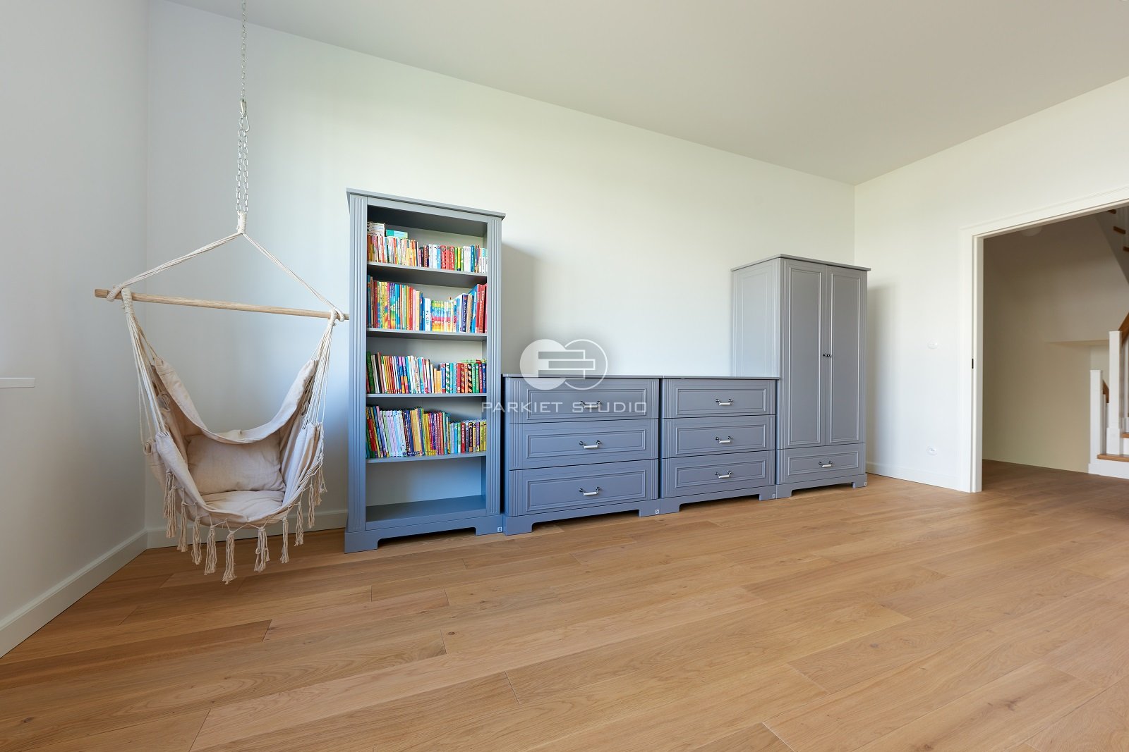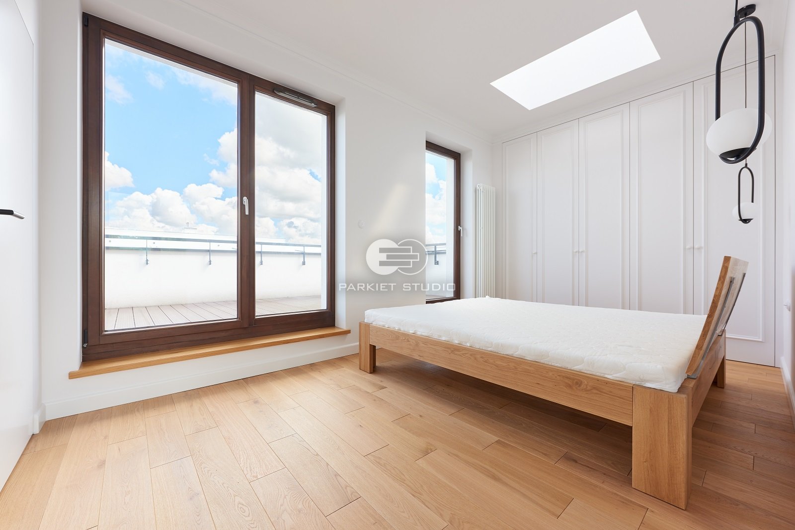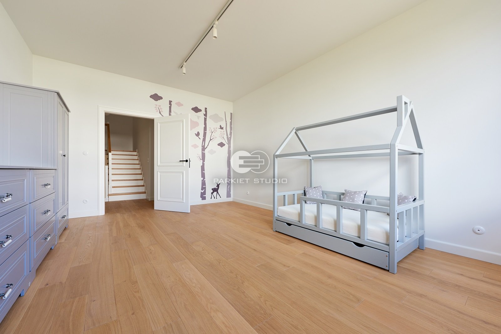 Podłoga wykonana z naturalnego drewna dębowego, charakteryzuje się wyjątkową trwałością i szlachetnym wyglądem. Została wykończona matowym lakierem, który nadaje jej subtelny, naturalny efekt, bez nadmiernego połysku. Jasna tonacja drewna wprowadza do wnętrza poczucie przestronności, lekkości i świeżości, doskonale rozświetlając pomieszczenie. Matowe wykończenie podkreśla autentyczną strukturę słojów i fakturę drewna, zachowując jego ciepły, organiczny charakter. To elegancka i ponadczasowa baza, która pasuje zarówno do nowoczesnych jak i klasycznych aranżacji.