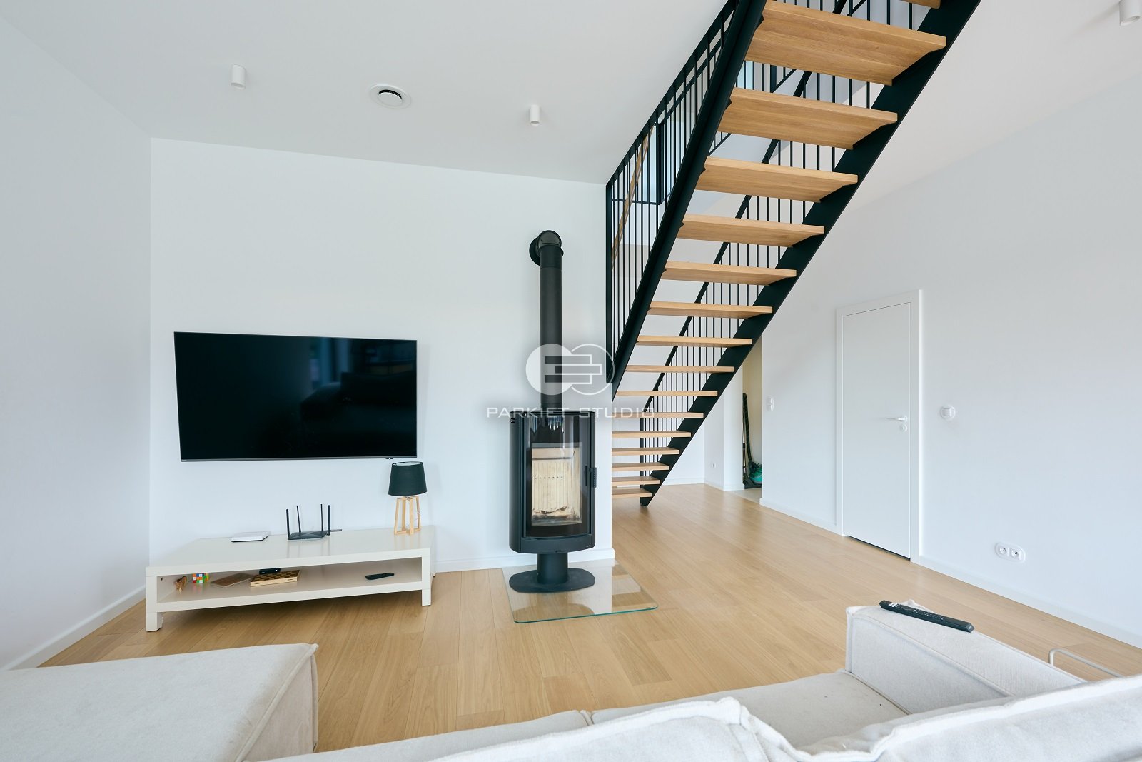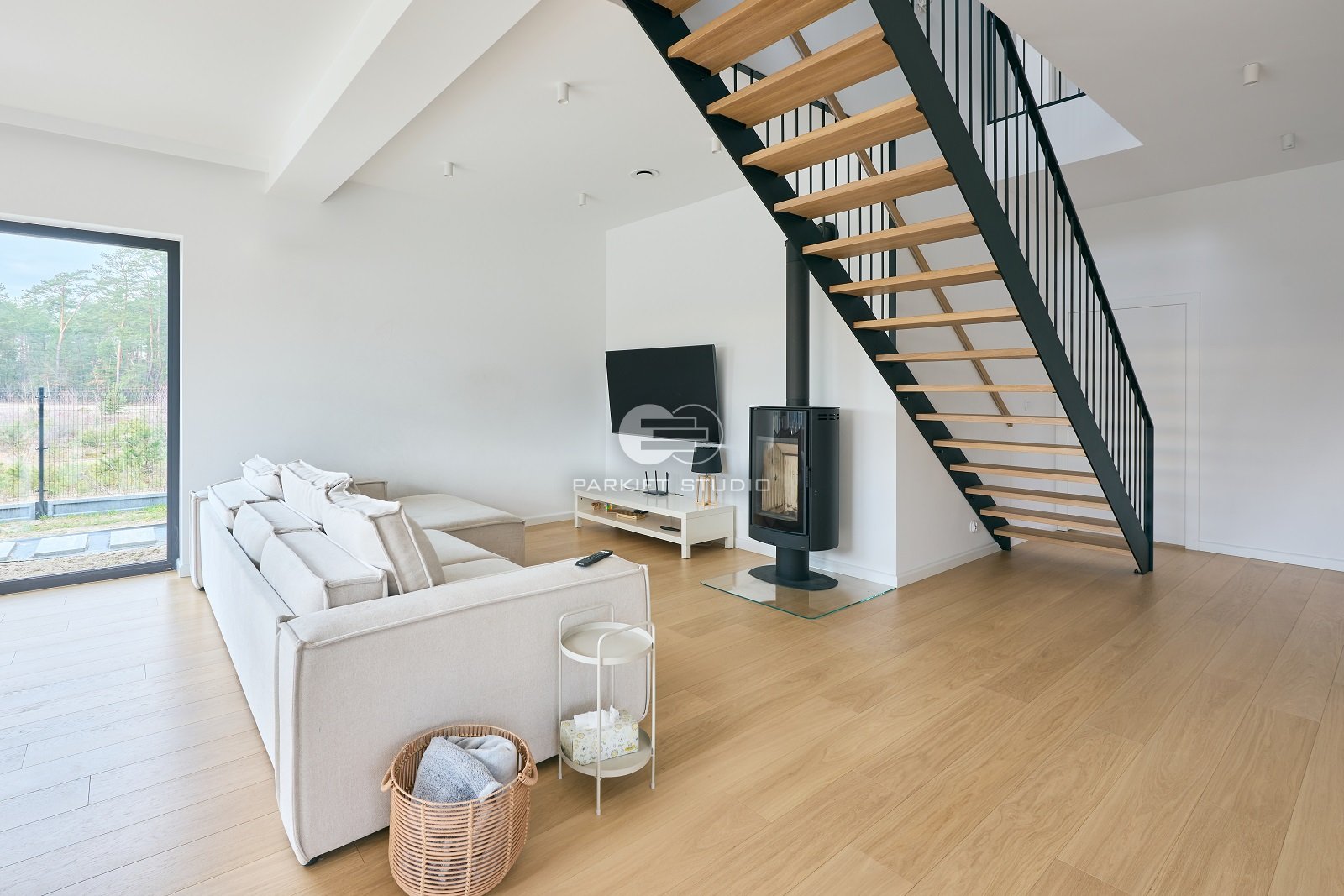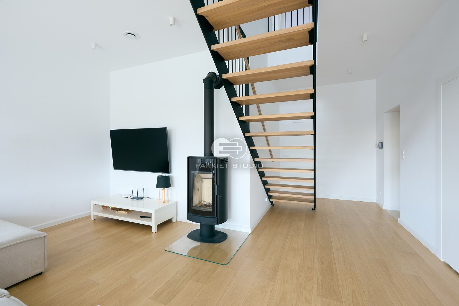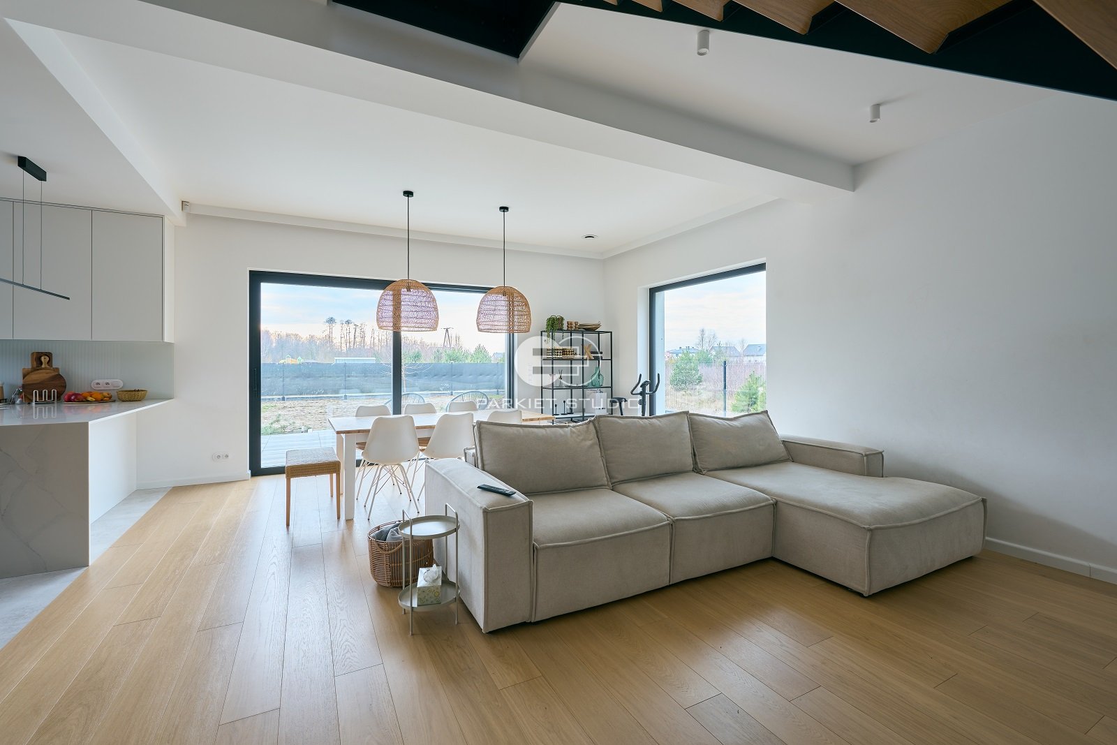 Podłoga wykonana z naturalnego drewna dębowego, charakteryzuje się wyjątkową trwałością i szlachetnym wyglądem. Została wykończona matowym lakierem, który nadaje jej subtelny, naturalny efekt, bez nadmiernego połysku. Jasna tonacja drewna wprowadza do wnętrza poczucie przestronności, lekkości i świeżości, doskonale rozświetlając pomieszczenie. Matowe wykończenie podkreśla autentyczną strukturę słojów i fakturę drewna, zachowując jego ciepły, organiczny charakter. To elegancka i ponadczasowa baza, która pasuje zarówno do nowoczesnych jak i klasycznych aranżacji.
