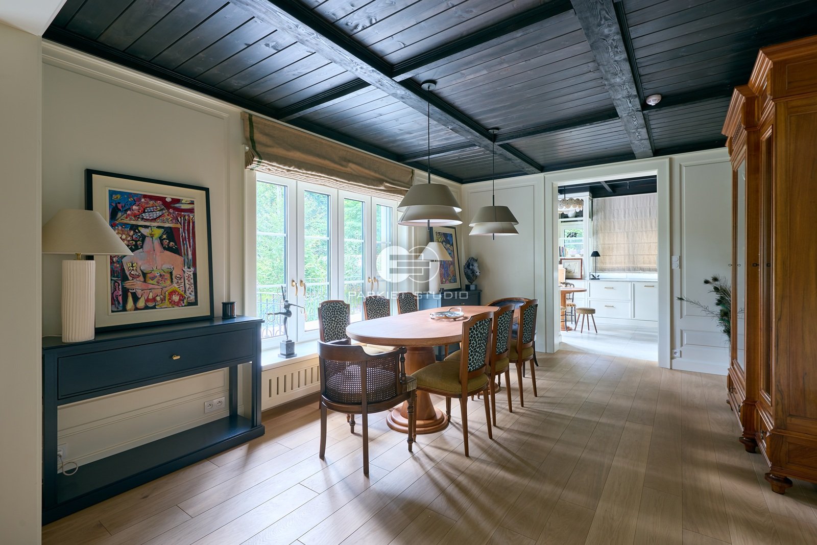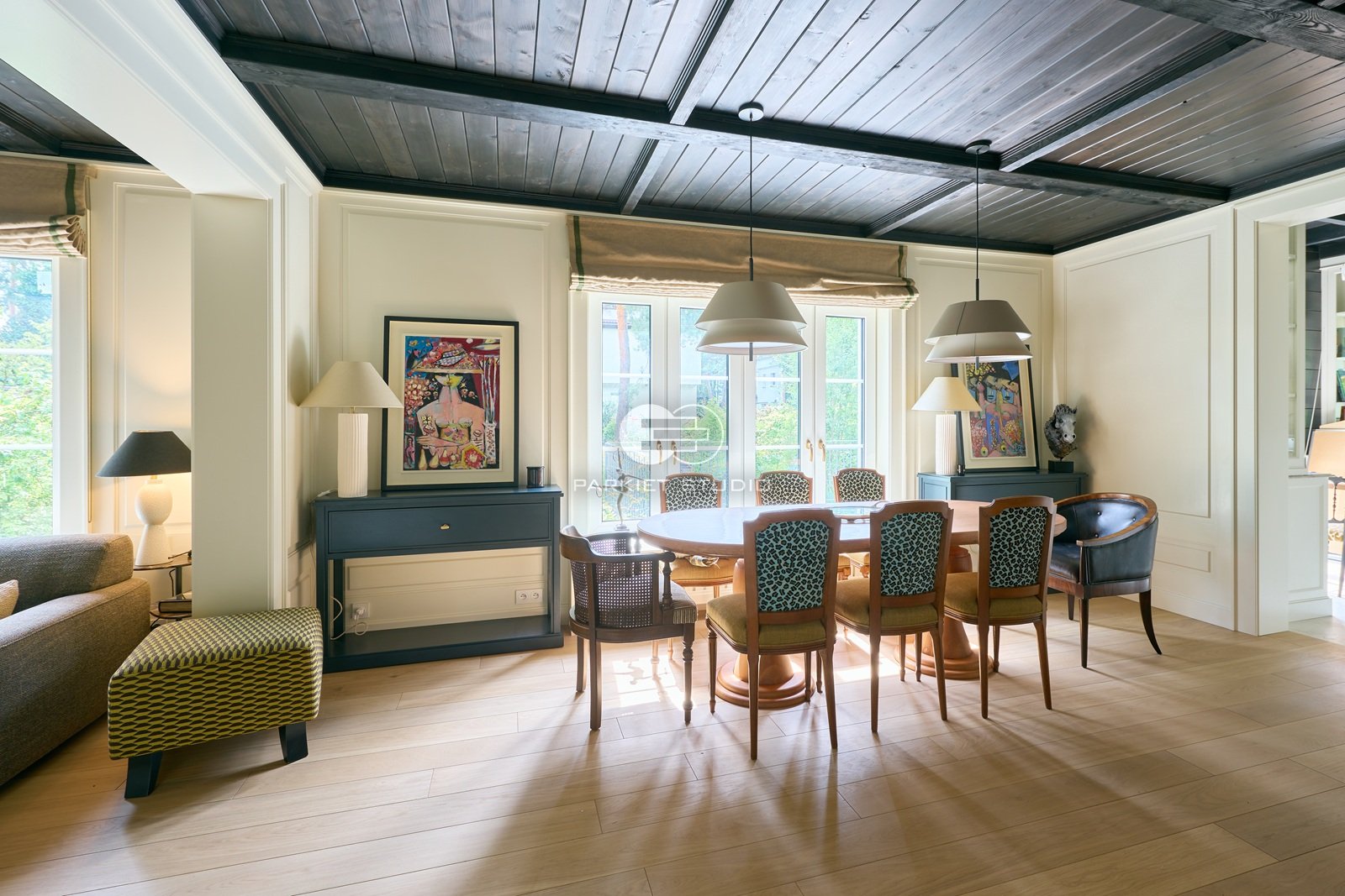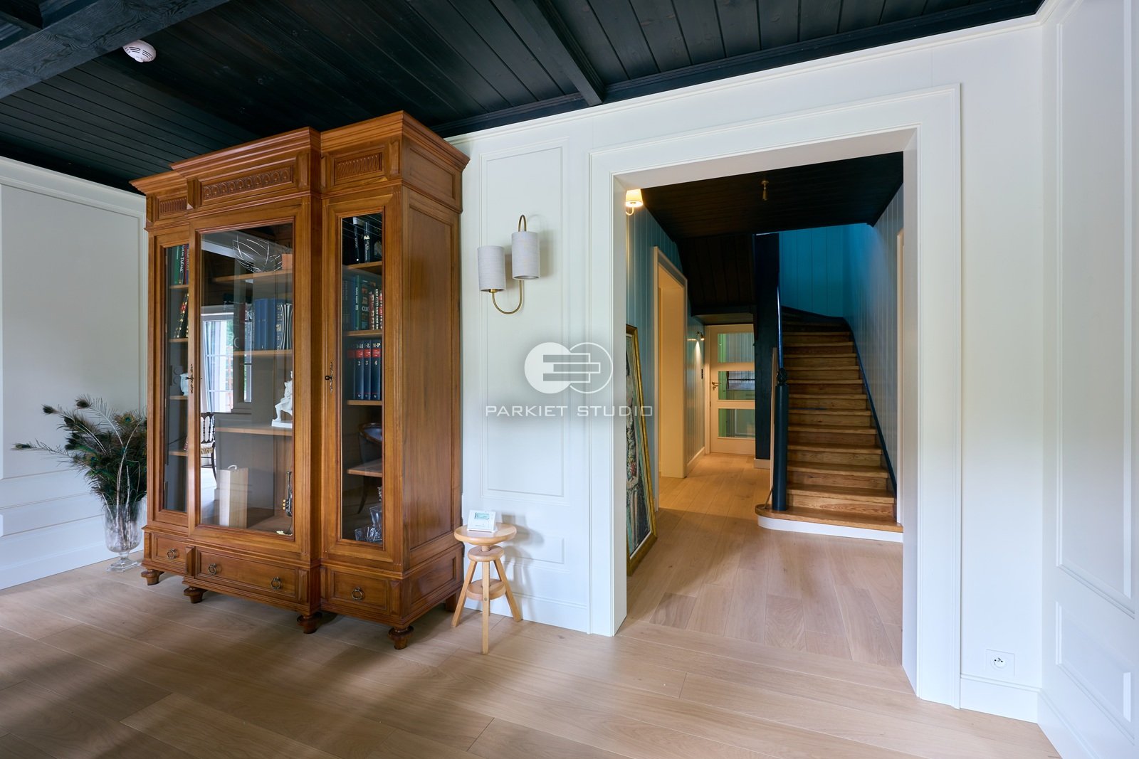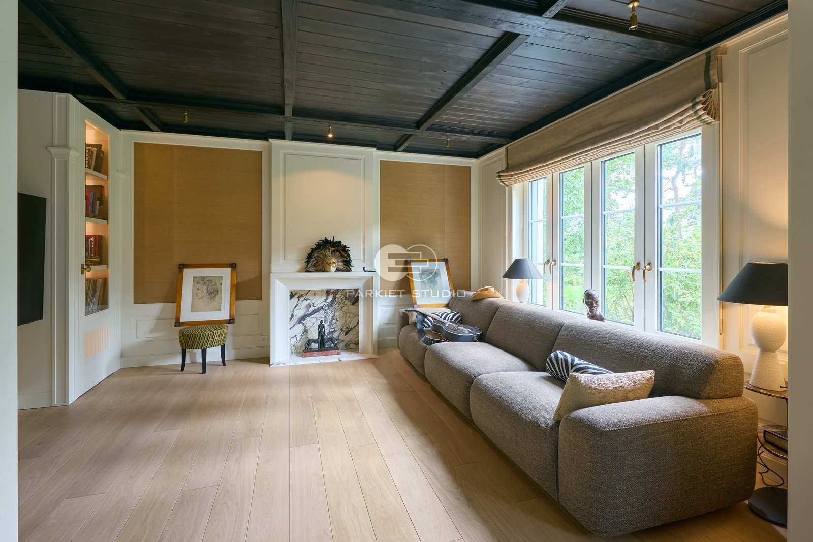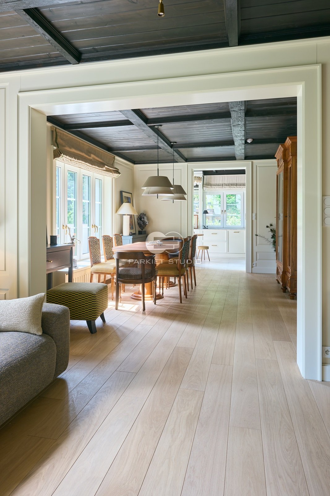 Podłoga wykonana z naturalnego drewna dębowego, charakteryzuje się wyjątkową trwałością i szlachetnym wyglądem. Została wykończona matowym lakierem, który nadaje jej subtelny, naturalny efekt, bez nadmiernego połysku. Jasna tonacja drewna wprowadza do wnętrza poczucie przestronności, lekkości i świeżości, doskonale rozświetlając pomieszczenie. Matowe wykończenie podkreśla autentyczną strukturę słojów i fakturę drewna, zachowując jego ciepły, organiczny charakter. To elegancka i ponadczasowa baza, która pasuje zarówno do nowoczesnych jak i klasycznych aranżacji.