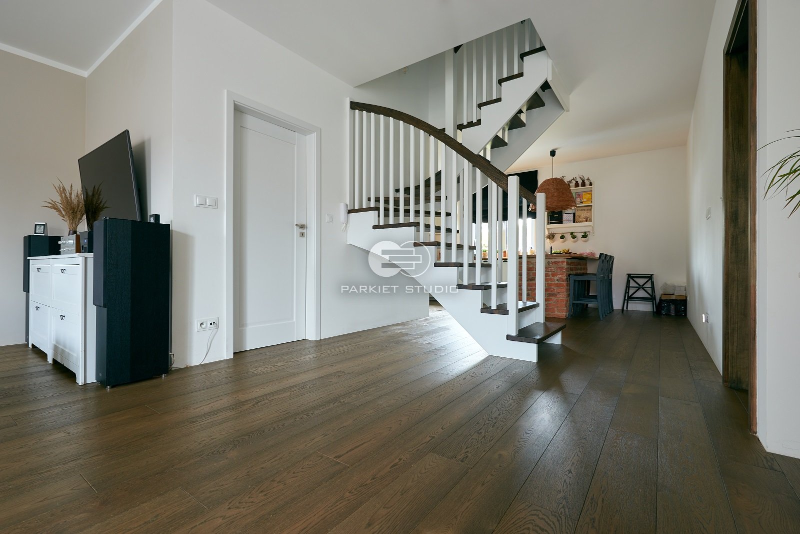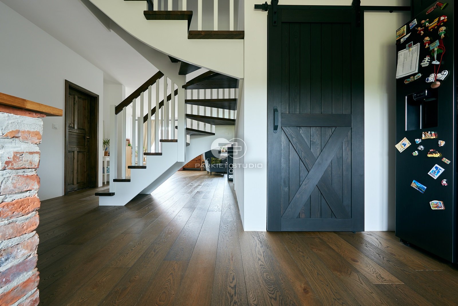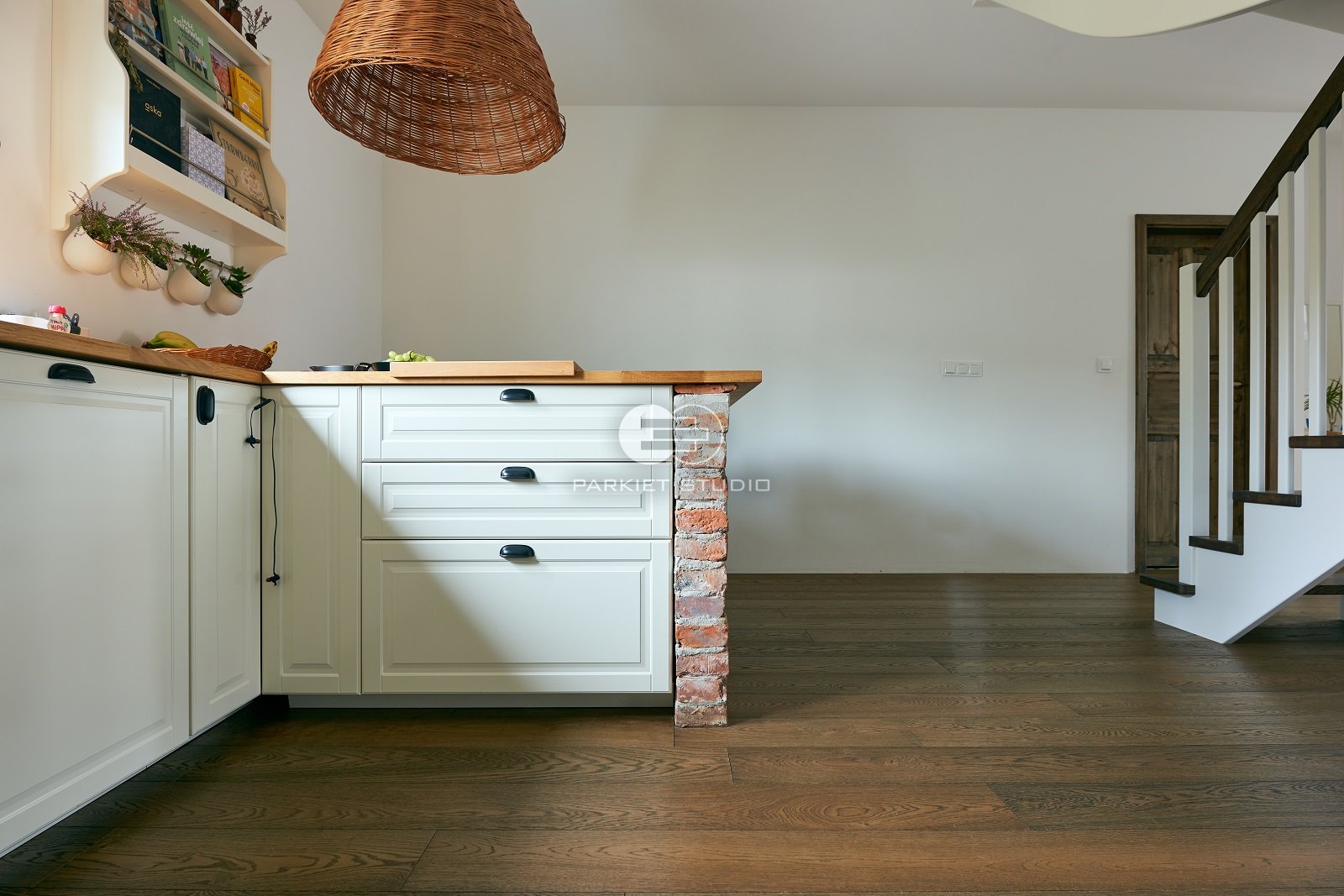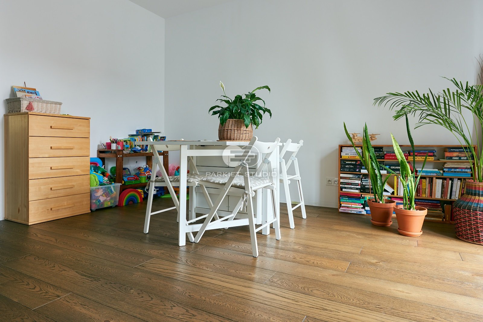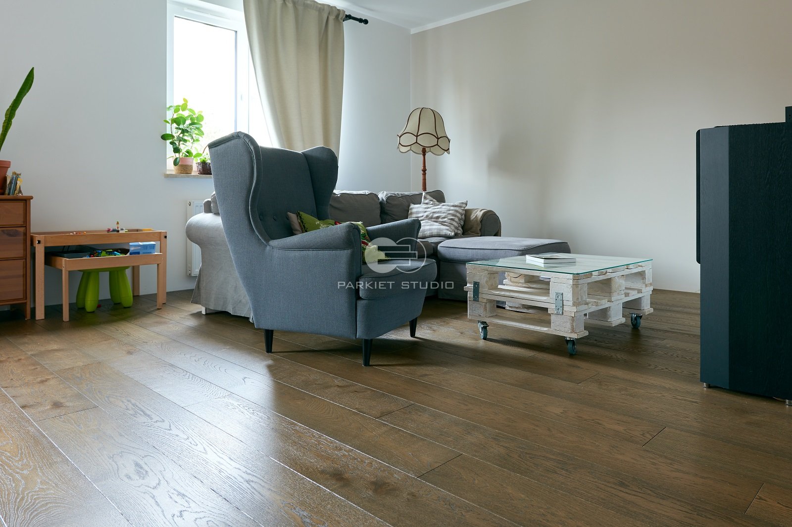 Deska Dąb Palony to niezwykle nowoczesna i elegancka podłoga o głębokim, brązowym odcieniu. Zabieg szczotkowania i użycie wyłącznie naturalnych olejowosków nadają jej wygląd antycznej, z pozoru nadszarpniętej zębem czasu podłogi. Precyzyjnie odwzorowana naturalna struktura drewna, w połączeniu z niebanalnym odcieniem stanowią idealnie dobrany duet, który współgra z nowoczesnymi, białymi meblami. Palony to zdecydowanie podłoga dla wszystkich podążających z duchem czasu i będących na bieżąco z najnowszymi trendami.