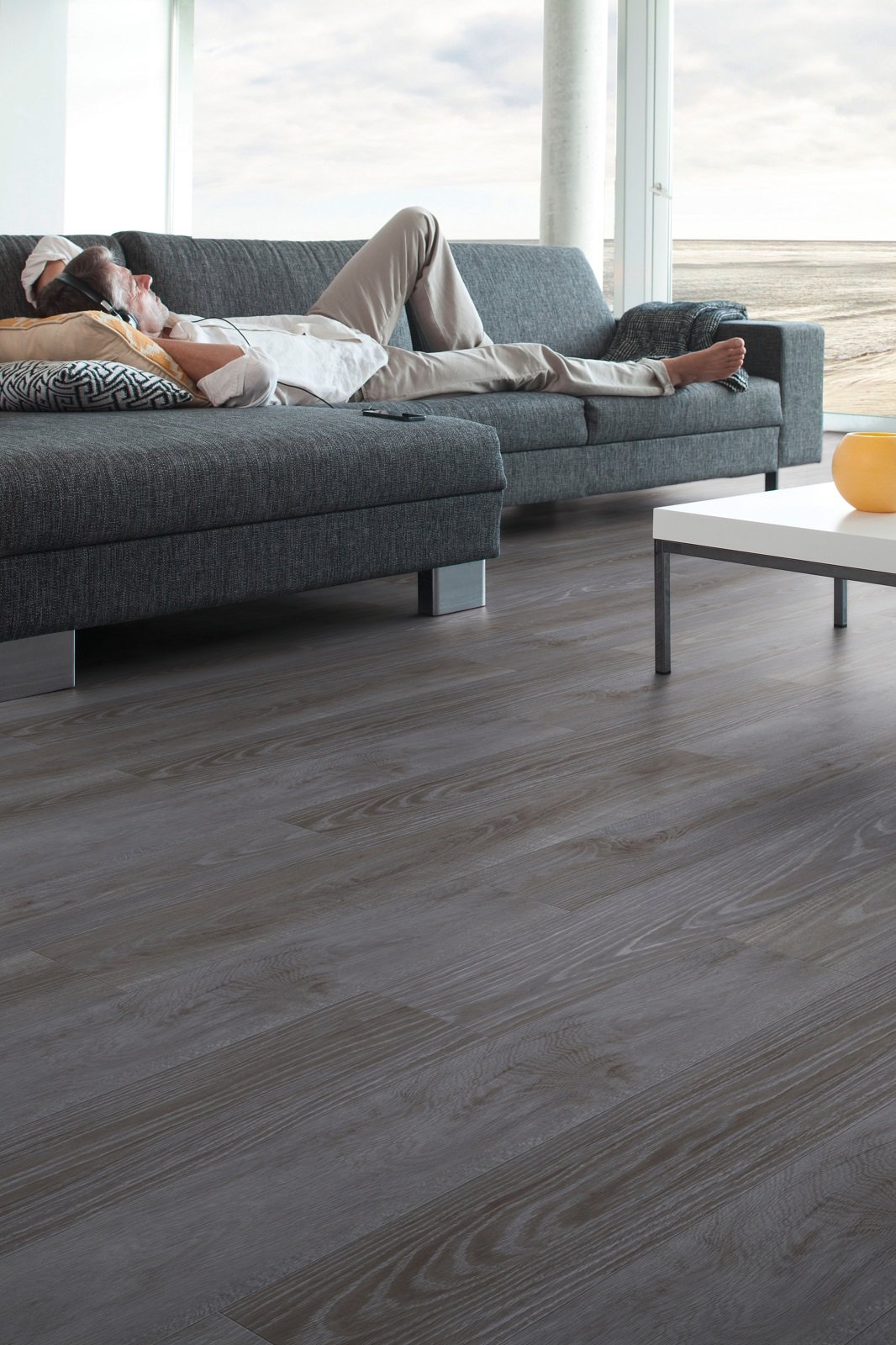 Deska idealnie imitująca poszarzały dąb uniwersalna i stylowa. Szczotkowanie uwydatnia usłojenie. Barwiona w urbanistycznych kolorach popiołu